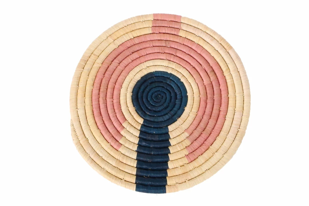 This gorgeous, woven piece is a true work of art. Use as an exquisite center piece to any tabletop or as eye-catching wall decor. A must have for every home decor enthusiast or someone looking to give a personalized hostess gift for birthdays or weddings. You can also pair with other wall paintings or baskets. Each of these breathtaking designs was made with courage and heart by a woman in rural Uganda. There is a hand-stitched loop on the back of each basket as ready to hang wall art.