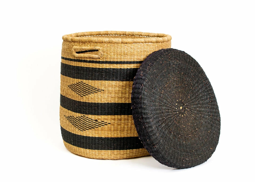 These delicately textured and handcrafted baskets were made by groups of women in intimate communities in the Bolgatanga region of Ghana.