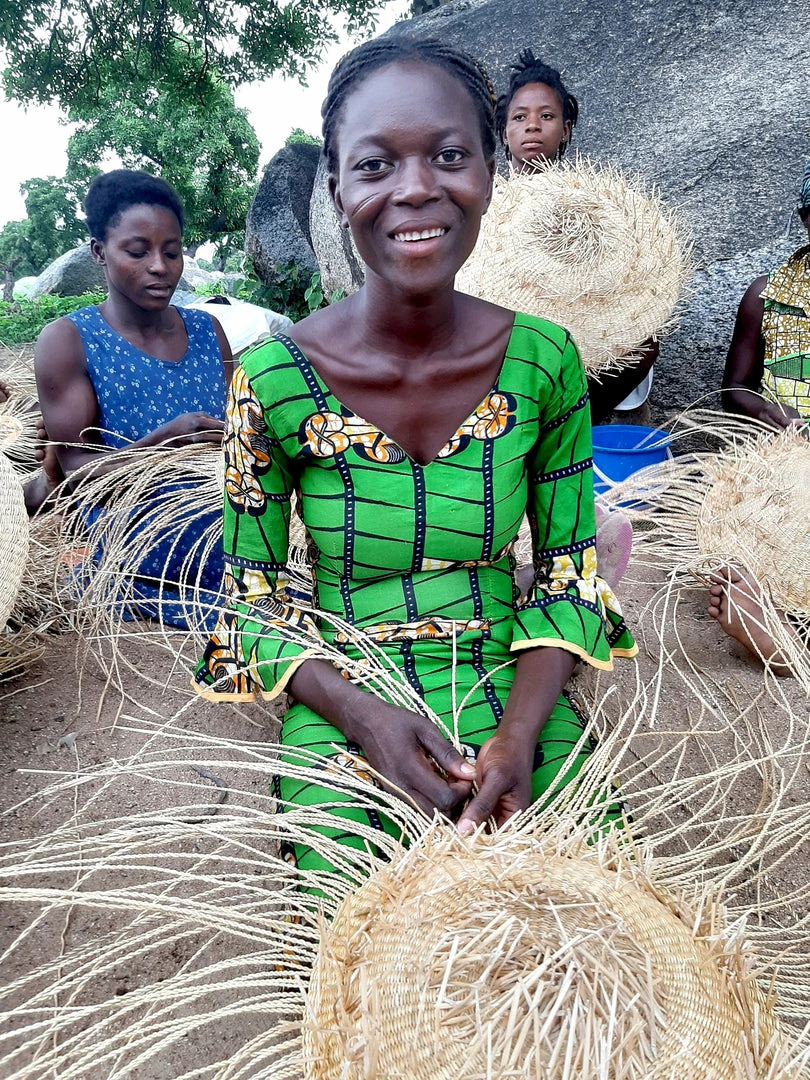 The material used for weaving in Bolgatanga is elephant grass, this grass is only available in the southern part of Ghana, Kumasi to be precise. The grasses are harvested and dried up, a process which might take up to three (3) days. It is then tied together in big bundles and transported to the Bolga markets. This is where most of the weavers buy their raw materials. The straw grass is further processed before weaving begins.