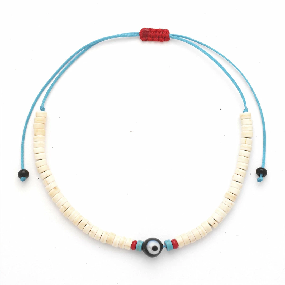 Evil Eye Chaolite Anklet with a single evil eye bead attached to a chaolite anklet. Each item is handmade and unique, may have slight variations.