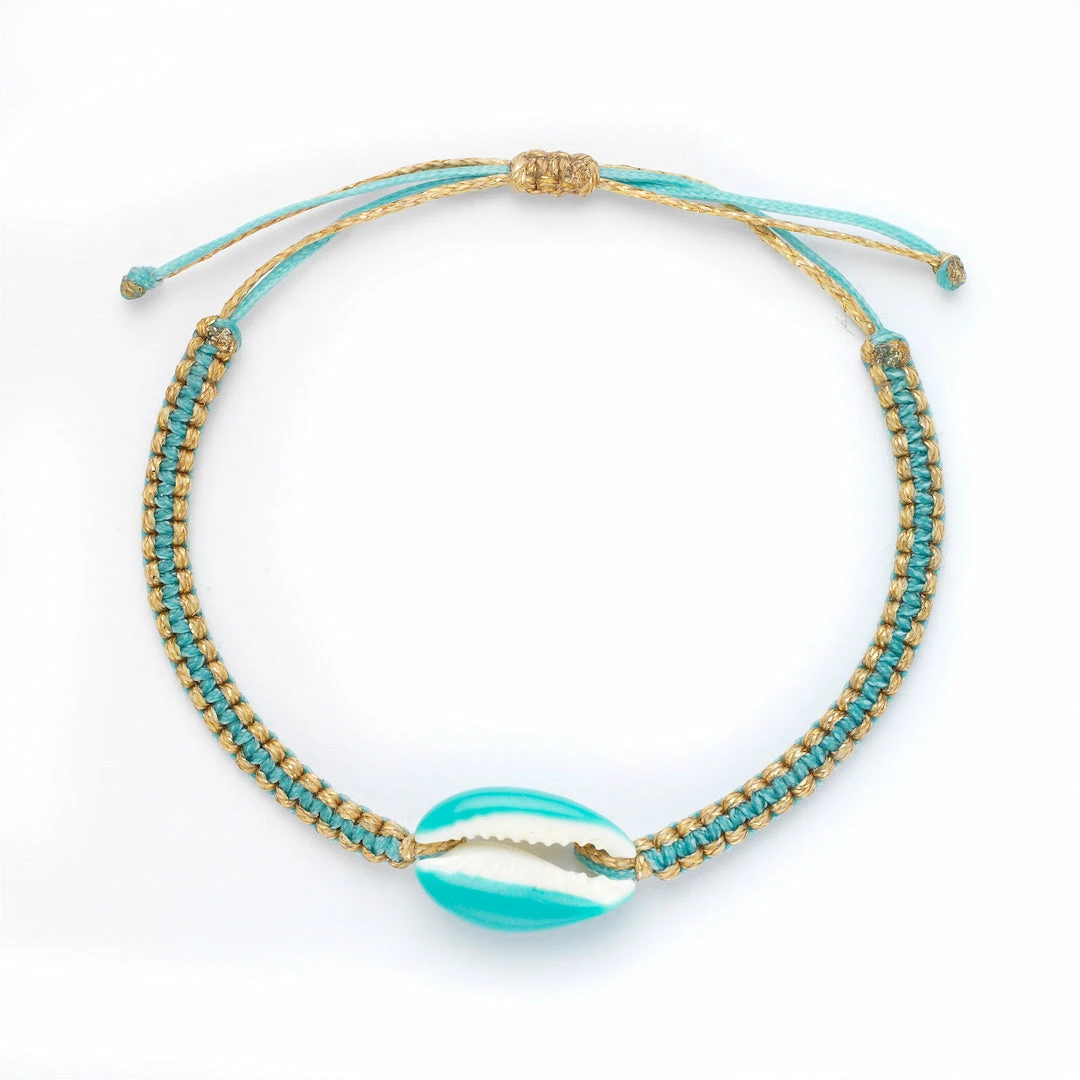 Ocean Cowrie Shell Bracelet with a single painted shell attached to a multicolor threaded bracelet. Each item is handmade and unique, may have slight variations