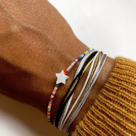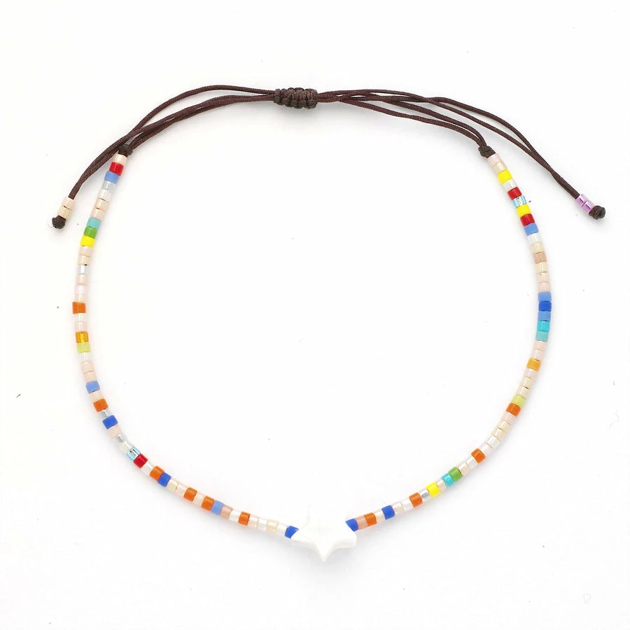 Star Thread Bracelet with a single star pendant on a multicolored beaded bracelet. Each item is handmade and unique, may have slight variations.