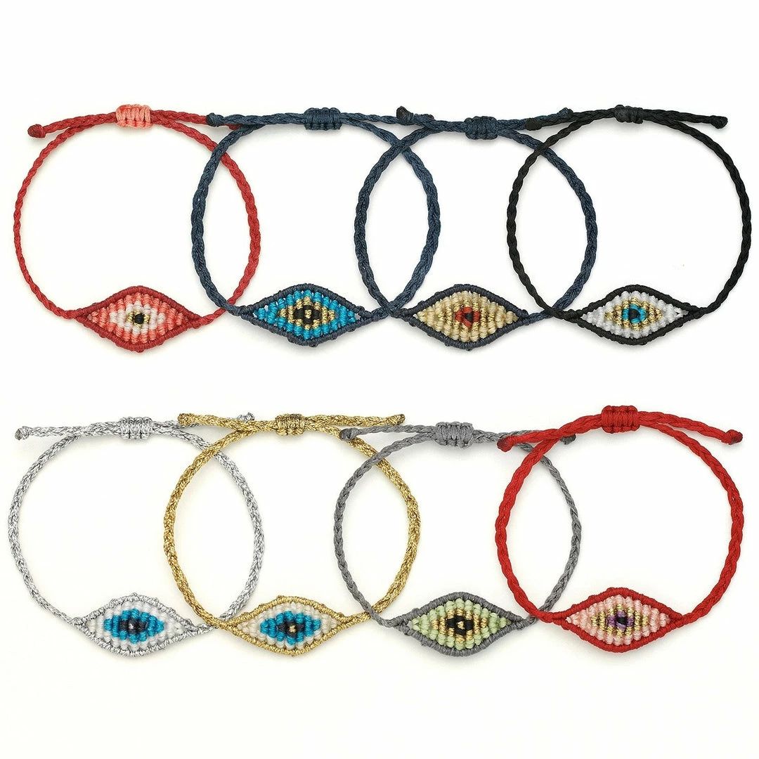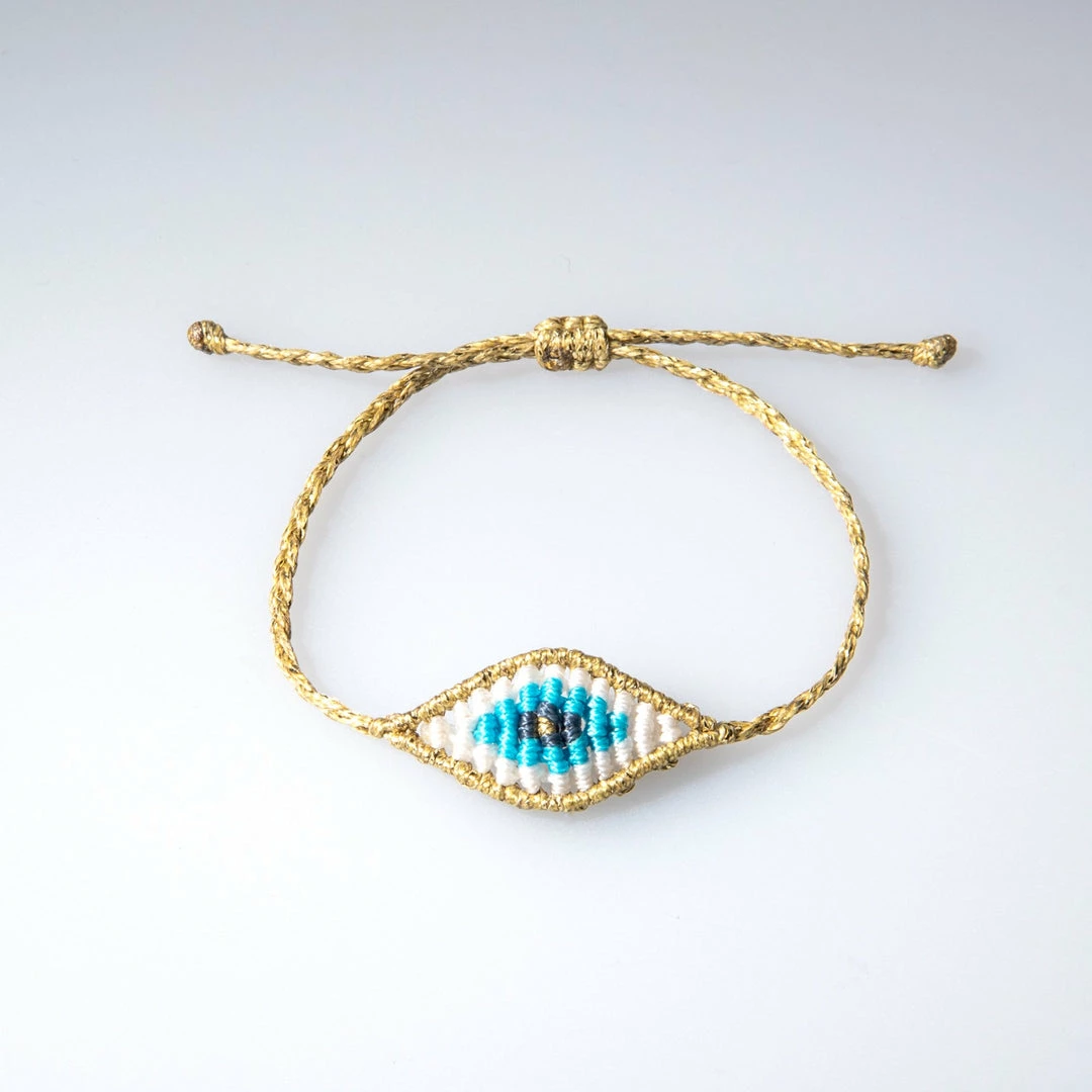 Large Evil Eye on a wax-coated bracelet. Each item is handmade and unique, may have slight variations.