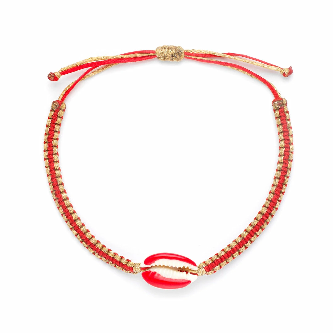 Tulip Cowrie Shell Bracelet with a single painted shell attached to a multicolor threaded bracelet. Each item is handmade and unique, may have slight variations