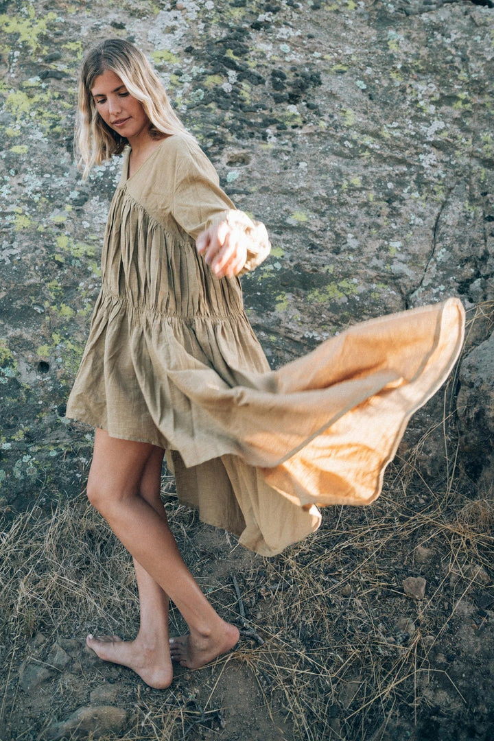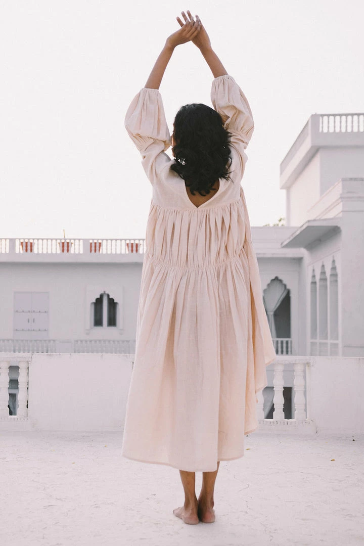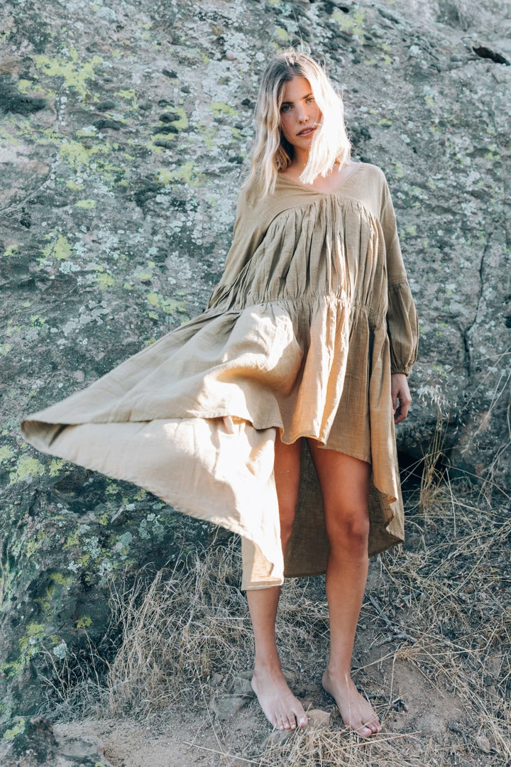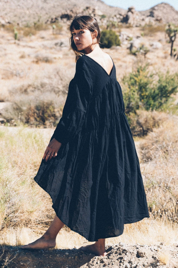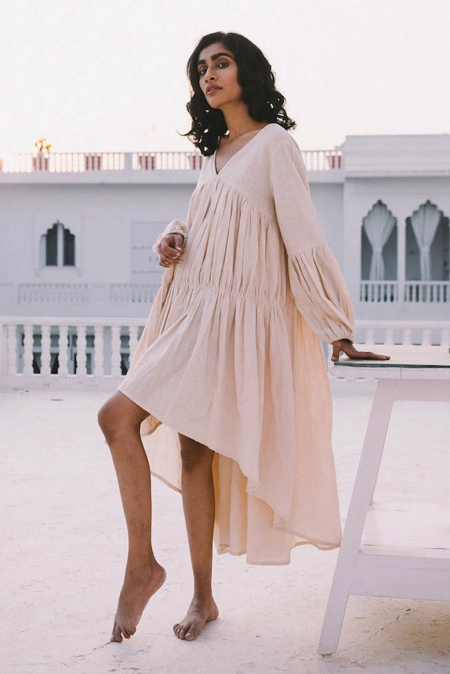 Handmade by artisans the To The Moon And Back dress has a ruffled tiered silhouette and sweeping dropped hem. Cut from 100% organic textured cotton this floaty dress translates beautifully from beach to the city, perfect for sunny days in LA or your next tropical location. A Perfect Nomad embodies the true meaning of nomad, free-spirited individuals with a nomadic  approach to life.Â