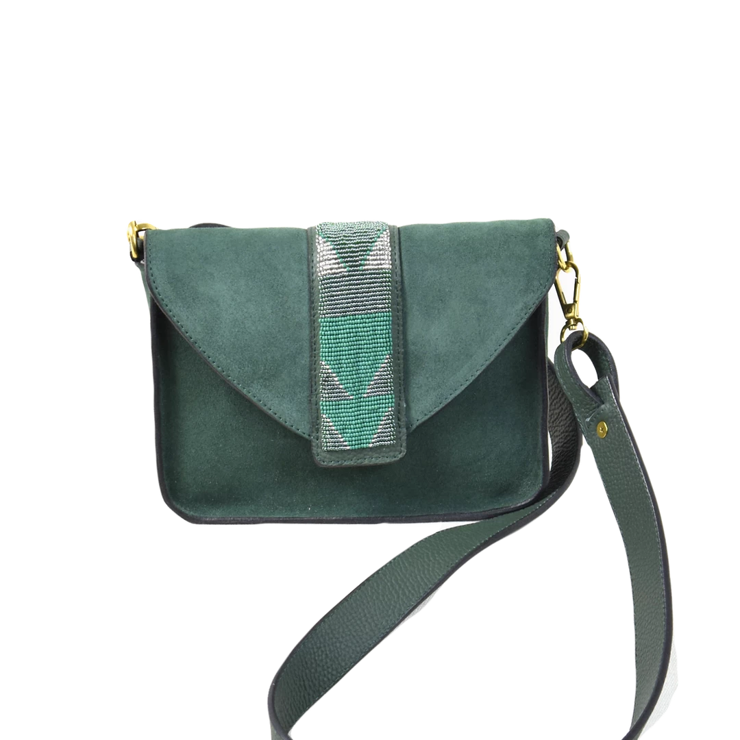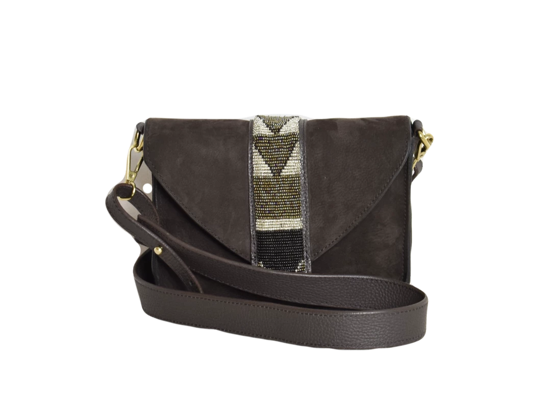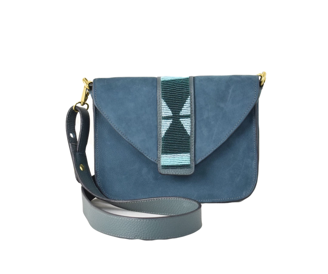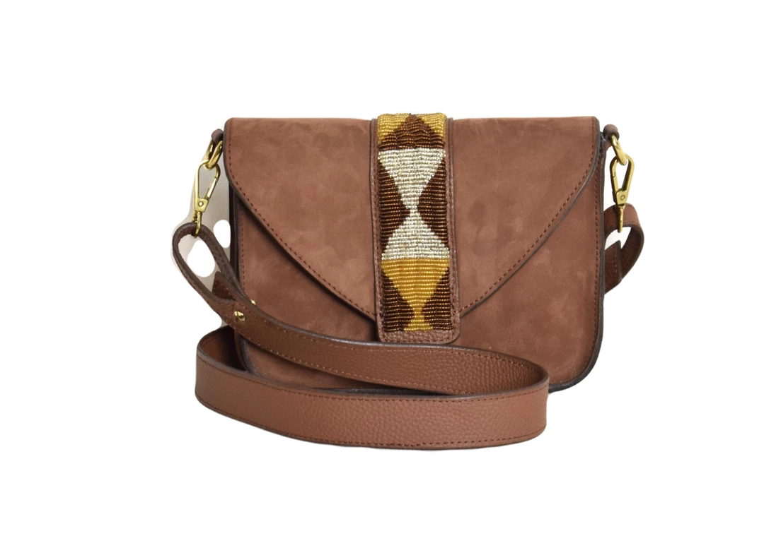 One of the latest bag in the Bush Princess collection. Its beaded work designed by their team of Maasai women make Rue du Dragon unique and elegant. It is lined with Chambray material and features a long detachable shoulder strap, and an inside zipped pocket.