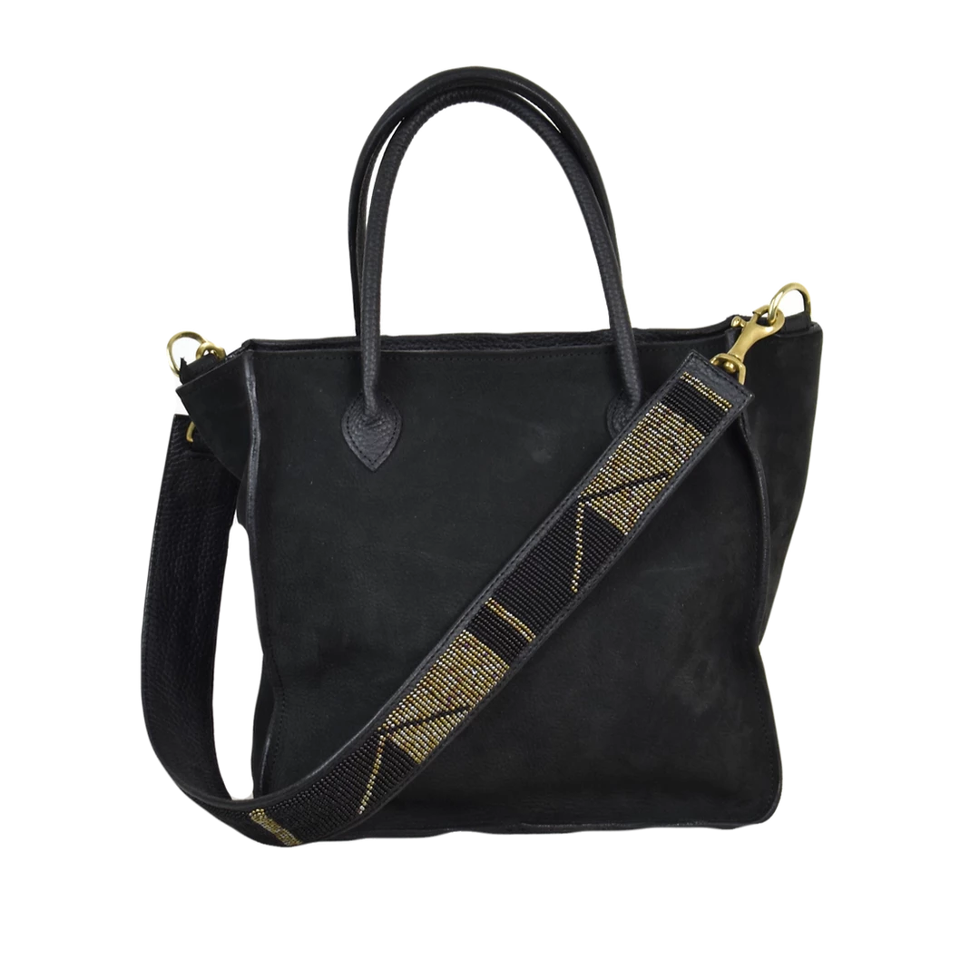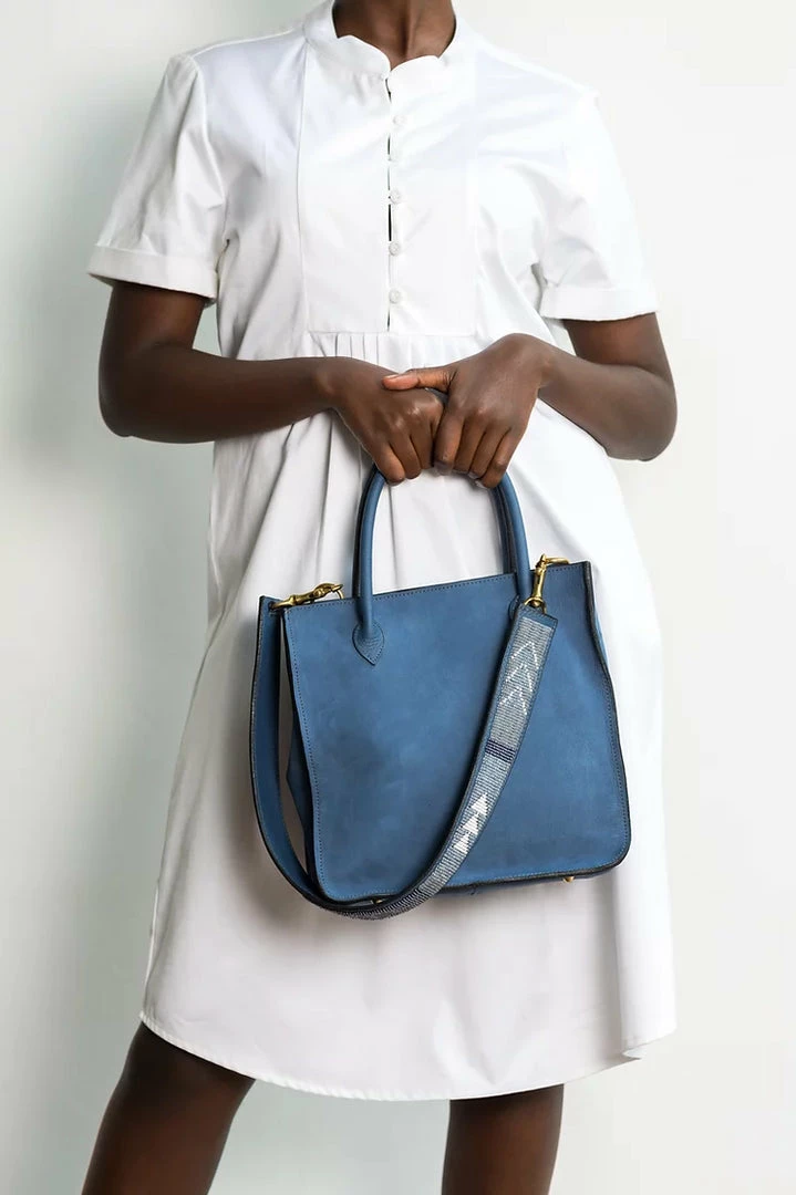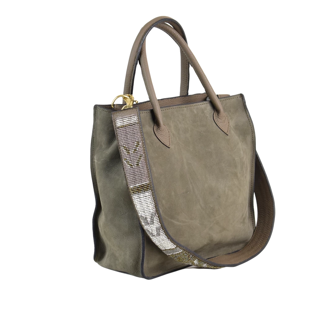 Suguta is our new mini tote bag. It is made in soft suede, closes with a zip and has a zipped inside pocket. Its unique beaded shoulder strap will offer you the option to carry it on your shoulder with style.. This simple Tote makes everyday sophistication effortless. Â Â