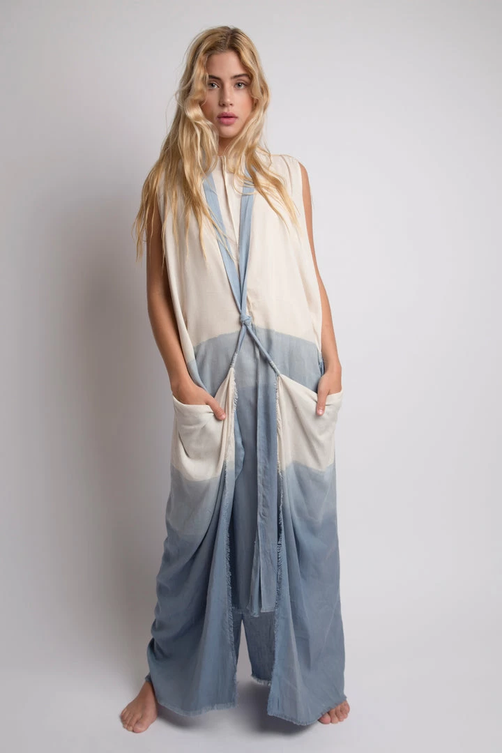 Kaftan inspired by Buddhist monks, this experimental loose cut can be worn three different ways, offering versatility and personality to spare. Made from handwoven bamboo fabric.