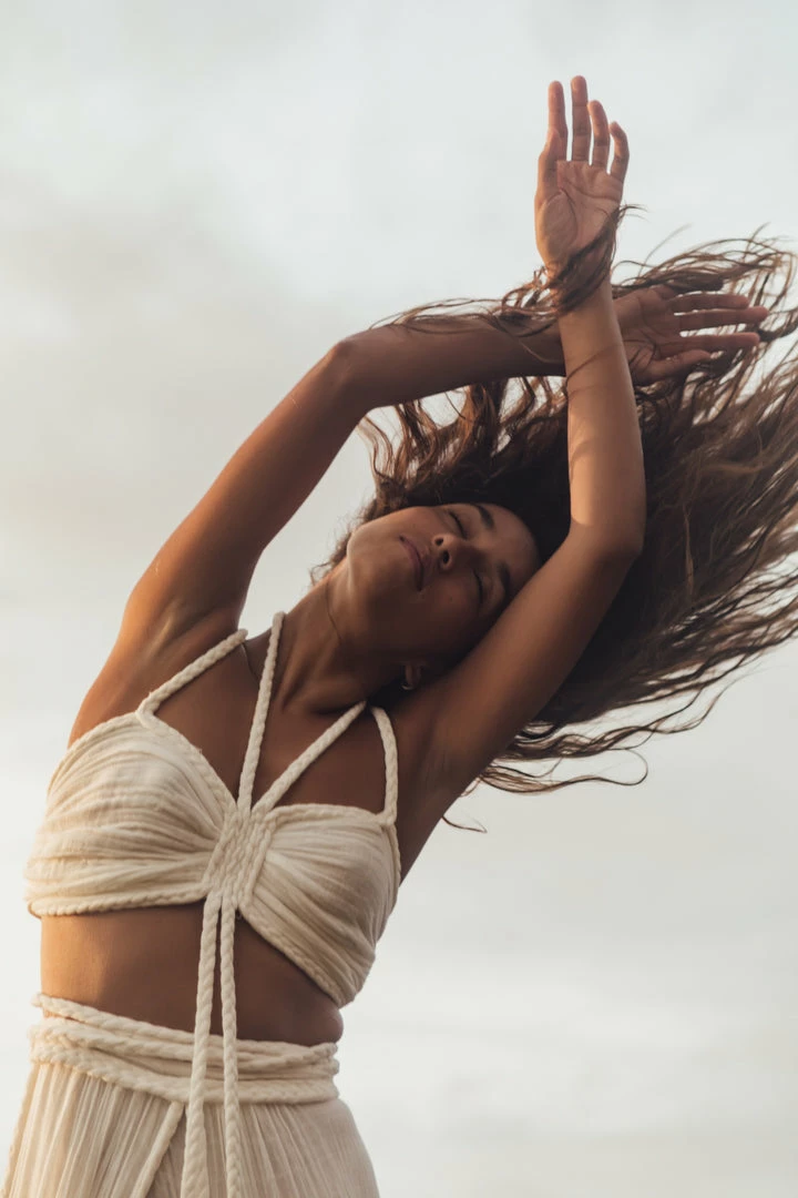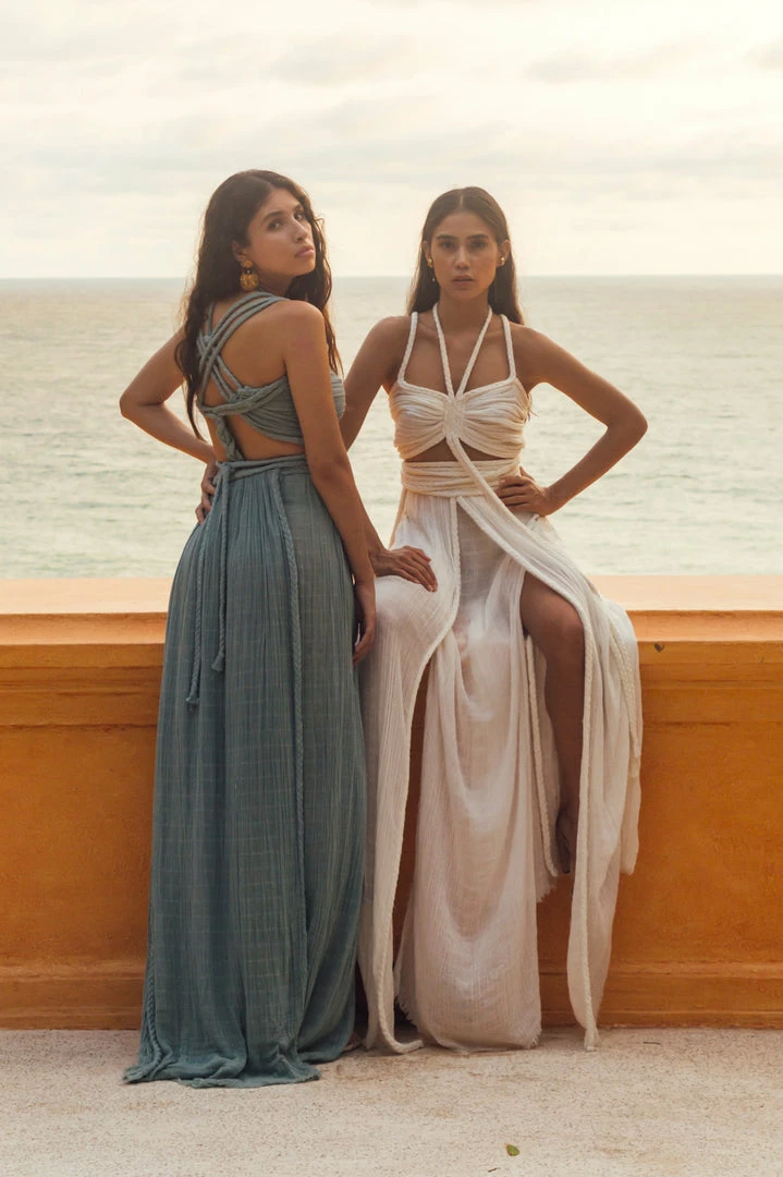 Introducing Chiara all new two-piece set! This cropped halter top and multi-layer wrap skirt can be worn together or separate, and can be tied in various ways like each and every Kasia Kulenty design. Every dress is meticulously handmade in soft cotton gauze fabric, and individually hand-dyed in non toxic dyes. Designed to fit all body types.