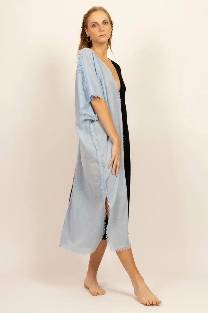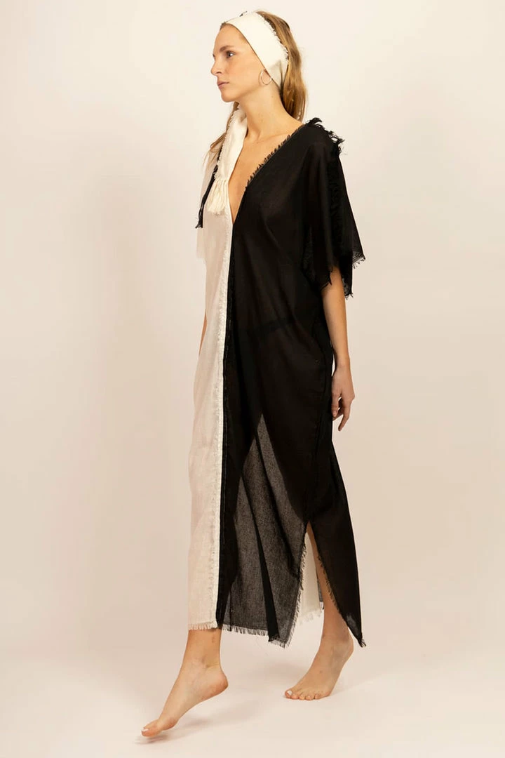 Dunas Kaftan with v-neck inspired by the dunes of Sossusvlei. Handmade from super light, artisanal 100% cotton fabric.