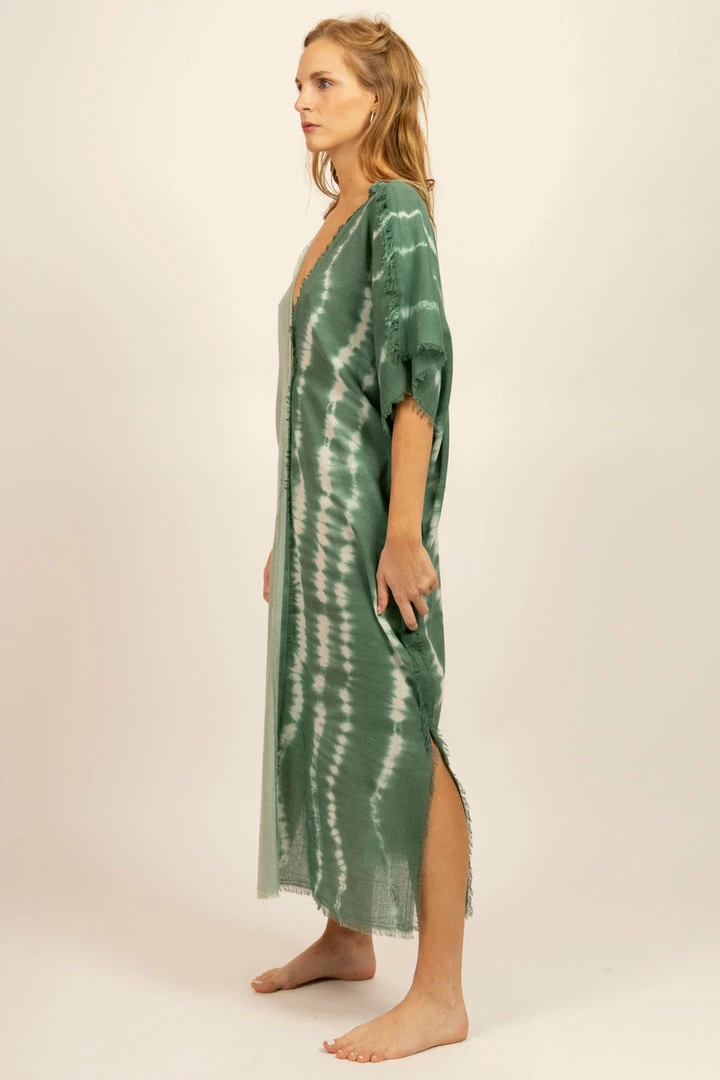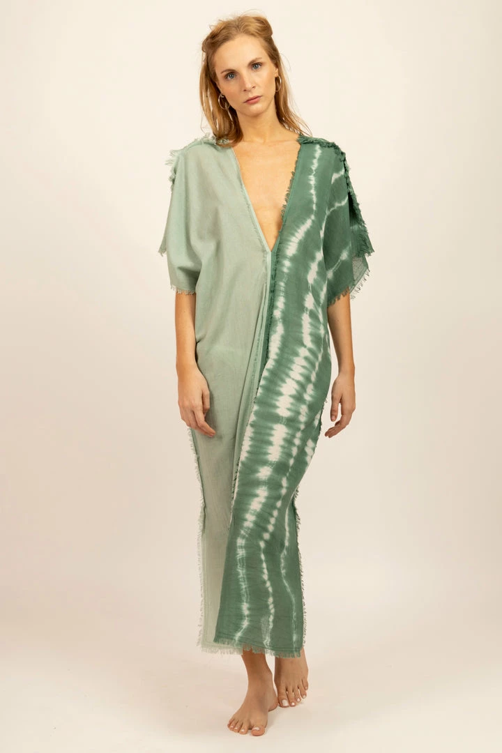 Dunas Kaftan with v-neck inspired by the dunes of Sossusvlei. Handmade from super light, artisanal 100% cotton fabric.