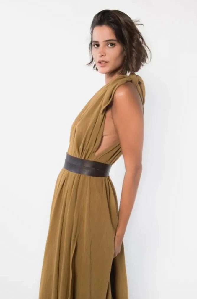 Nudo long dress handmade by artisans from remote communities in Mexico. Made of cotton and hand dyed. Comes with leather belt.