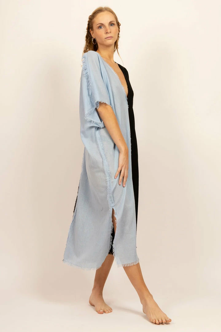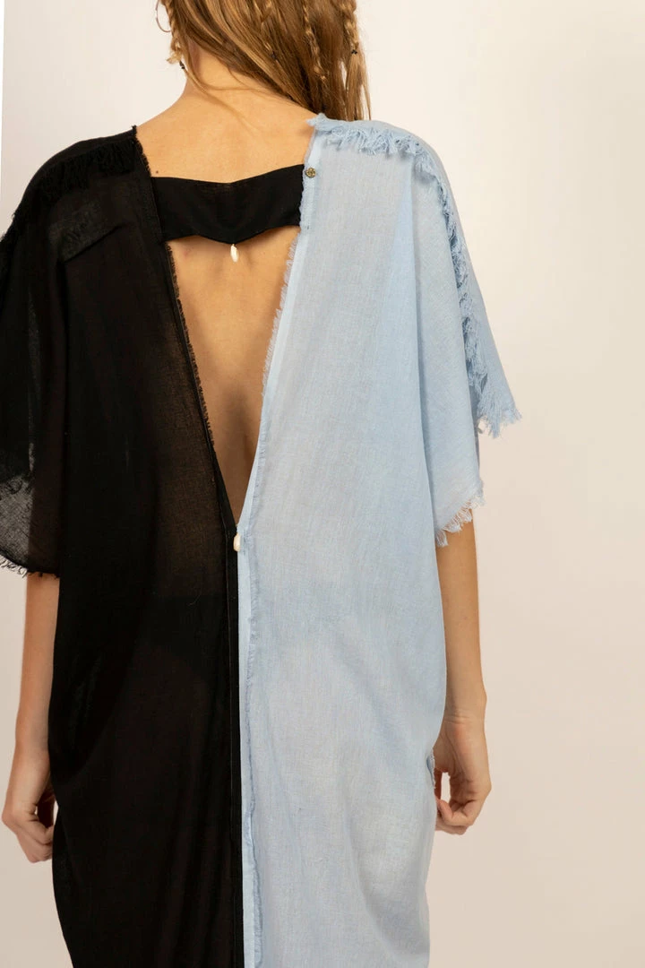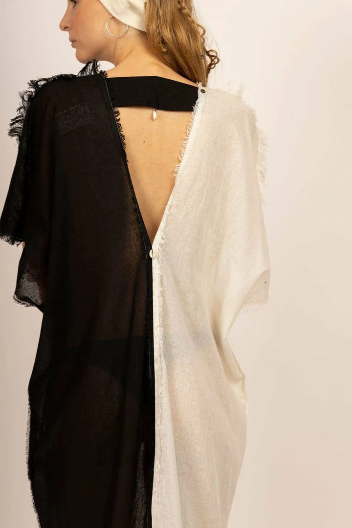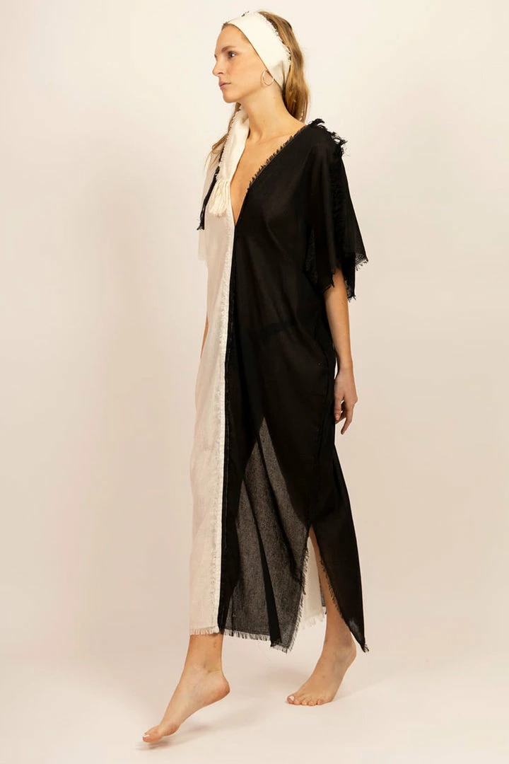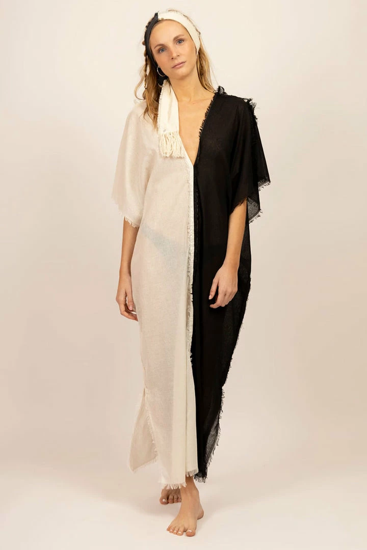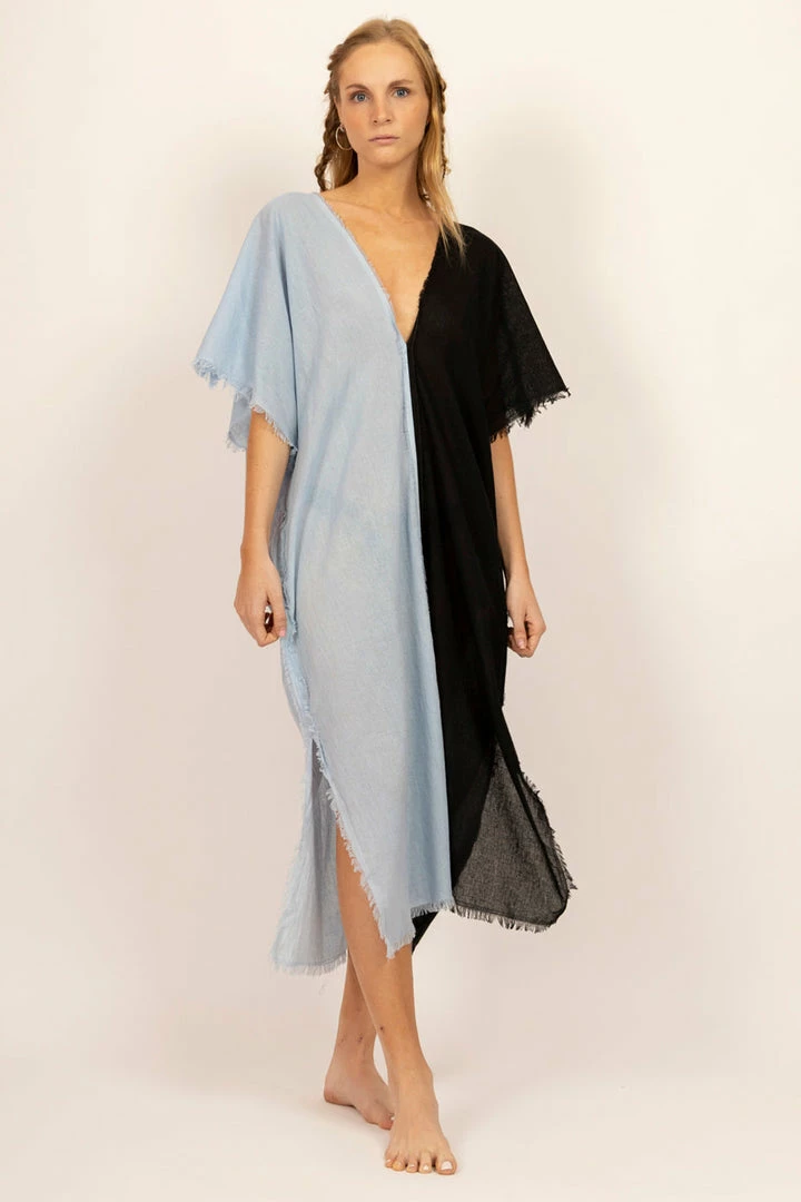 Dunas Kaftan with v-neck inspired by the dunes of Sossusvlei. Handmade from super light, artisanal 100% cotton fabric.