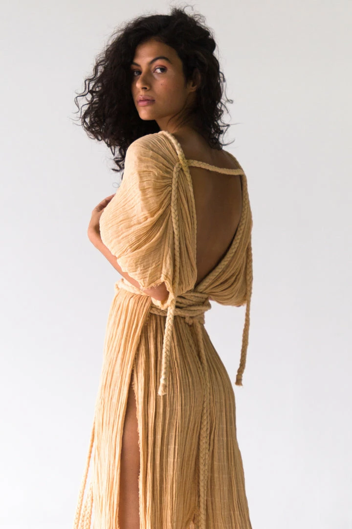 Every dress is meticulously handmade in soft cotton gauze fabric, and individually hand-dyed in non toxic dyes. Designed to fit all body types.
