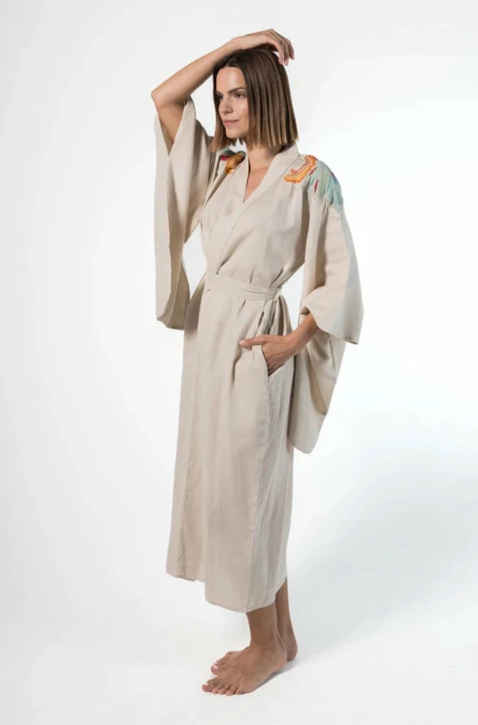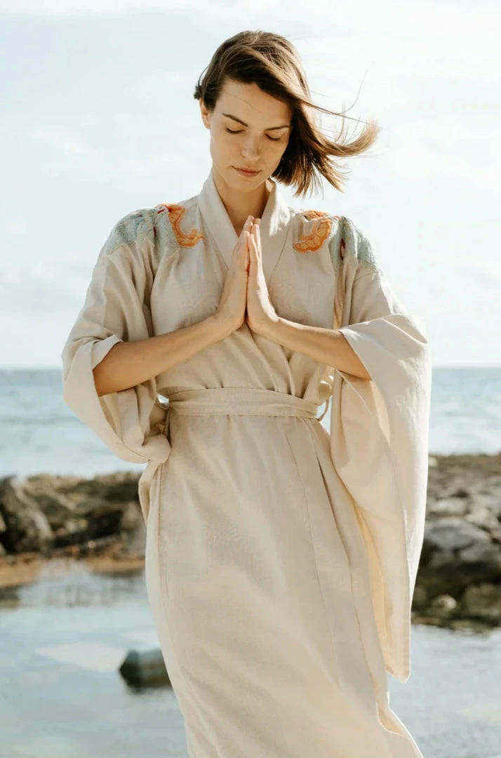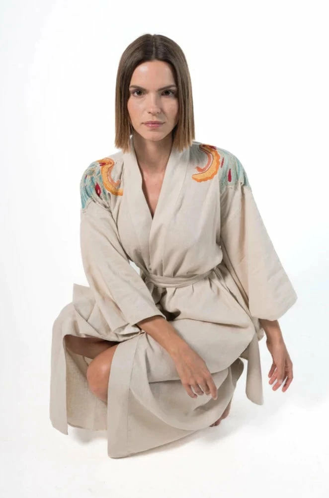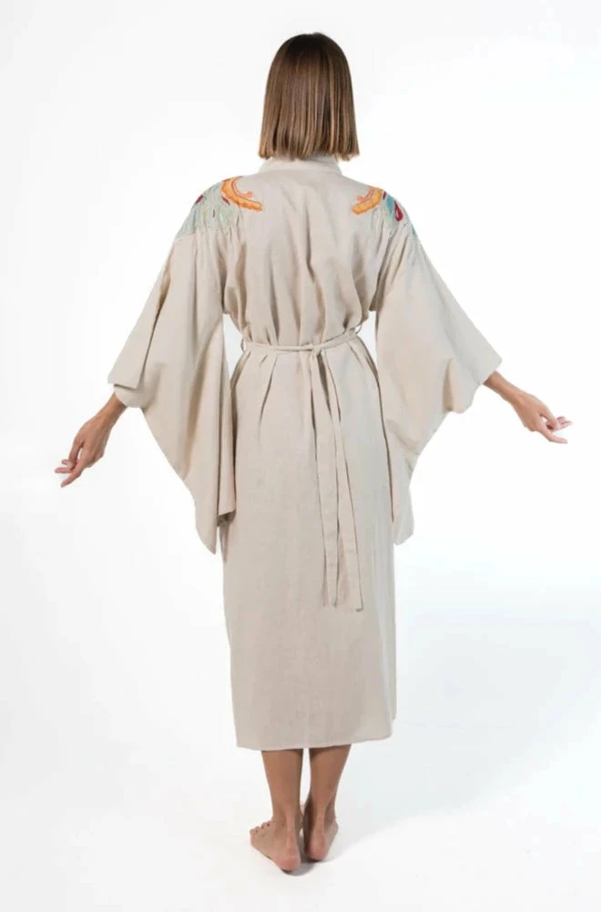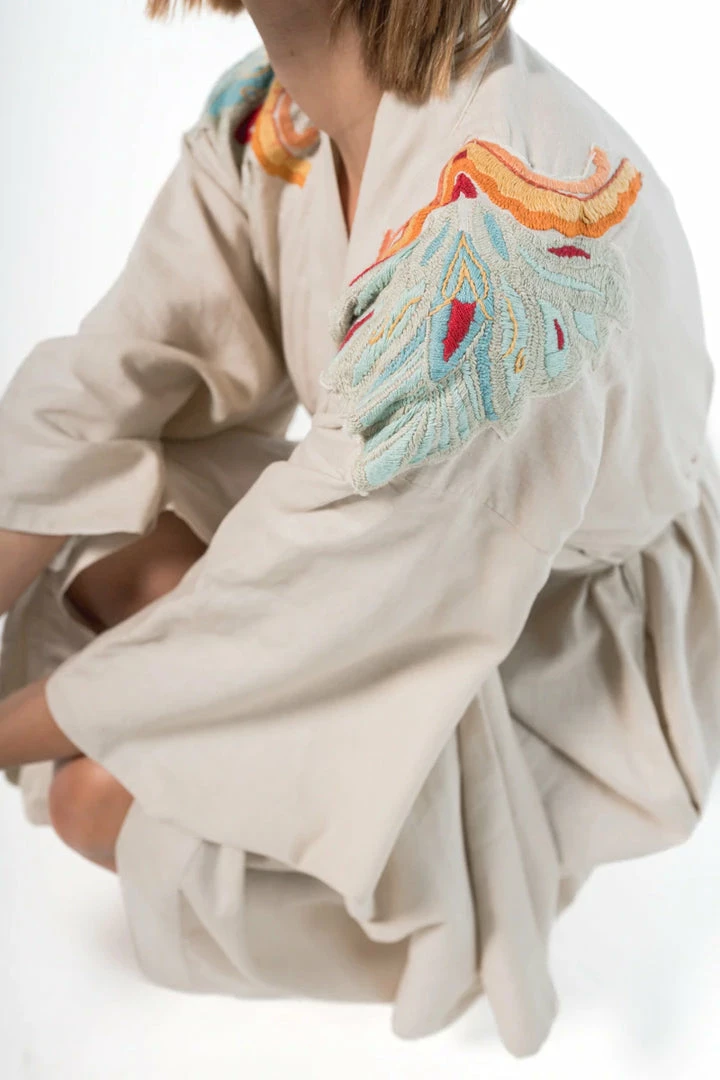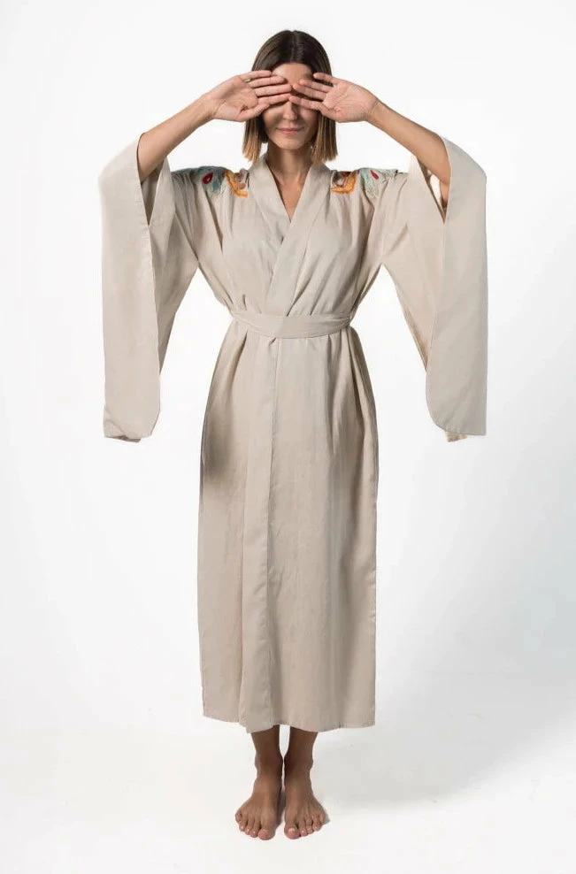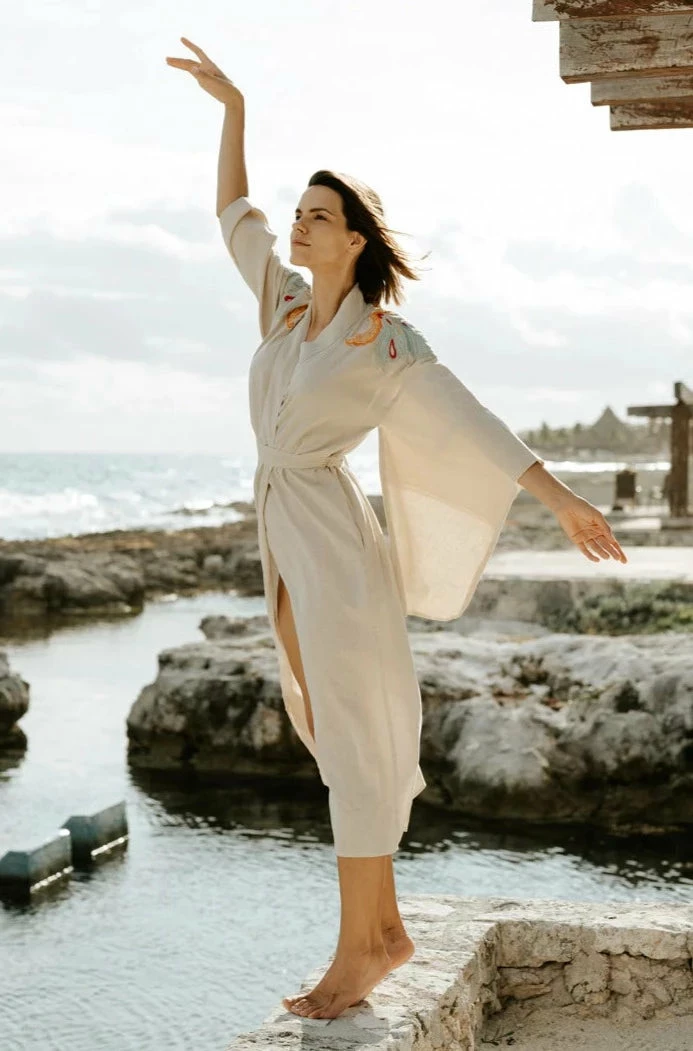 Loto Kimono hand embroidered by artisans from remote communities in Mexico.