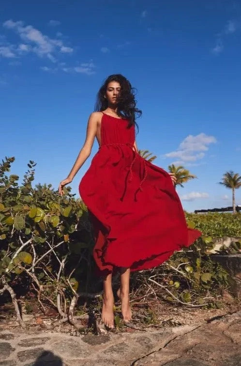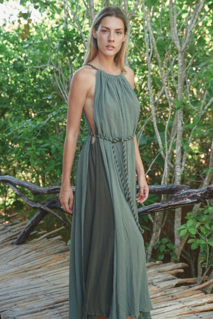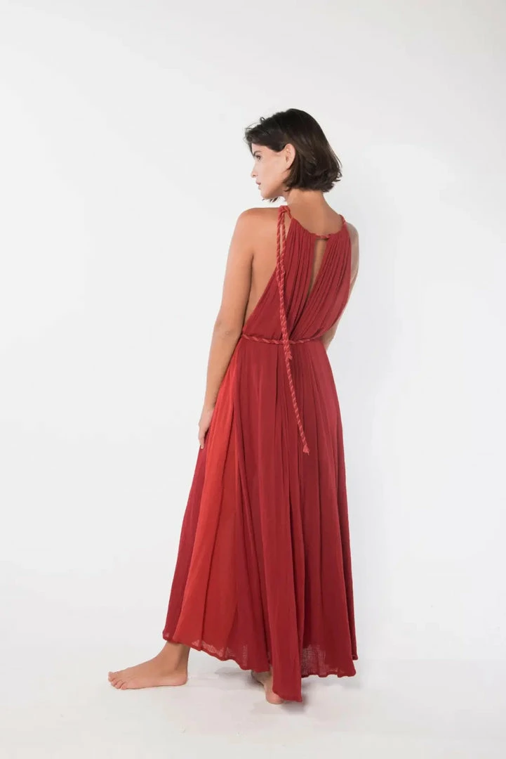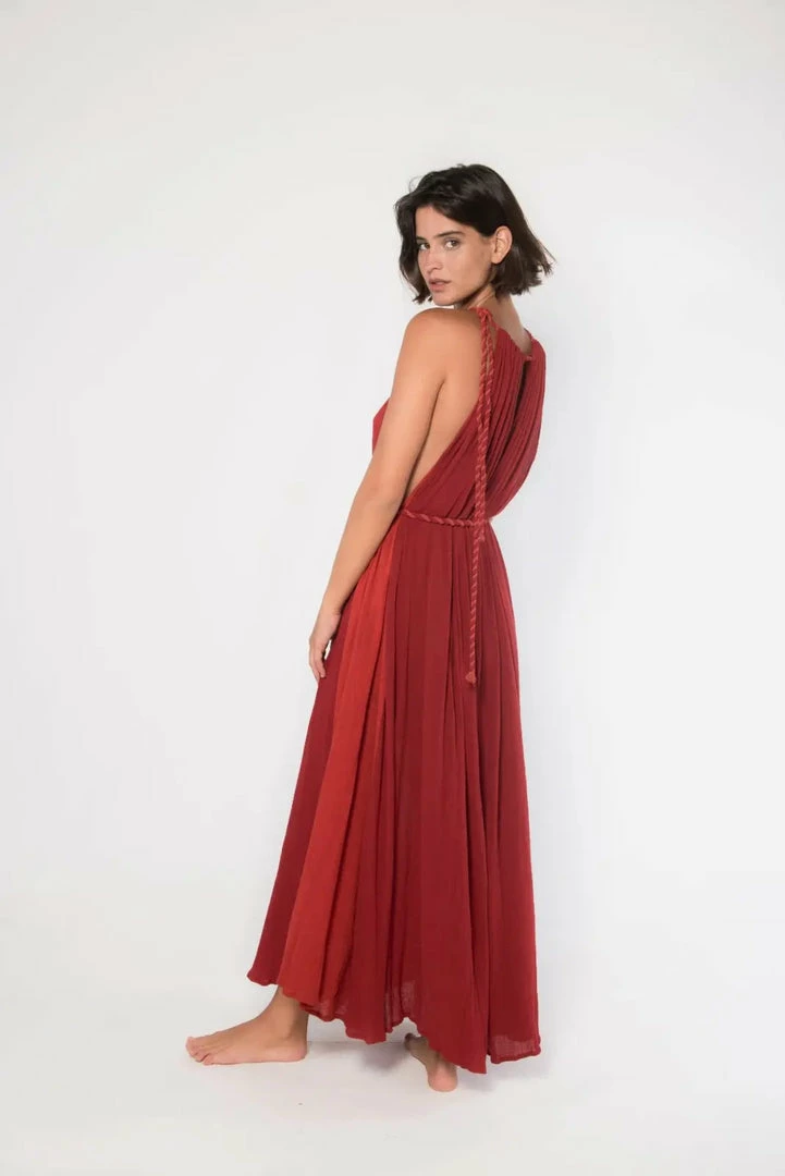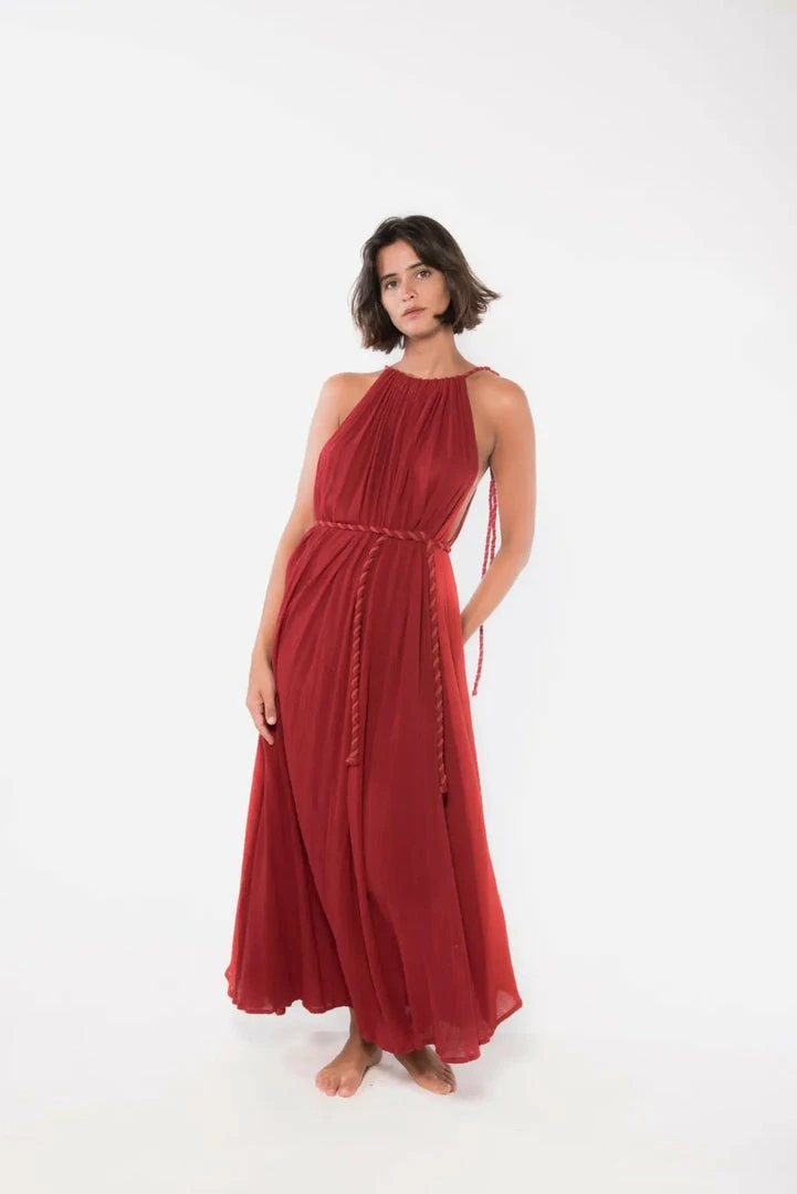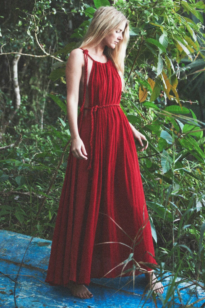 Passion long dress handmade by artisans from remote communities in Mexico. Hand dyed and with braided details. Comes with belt.