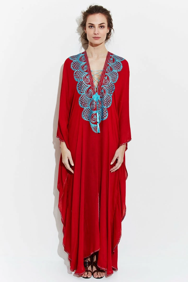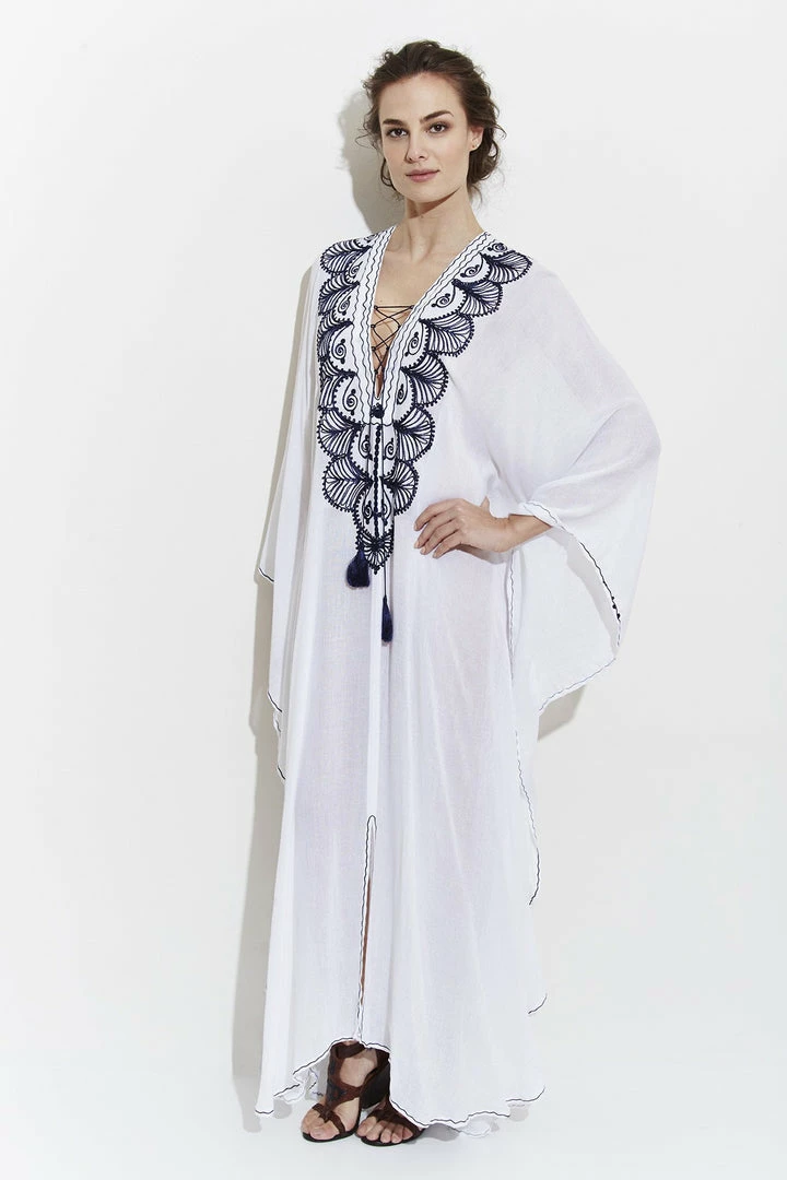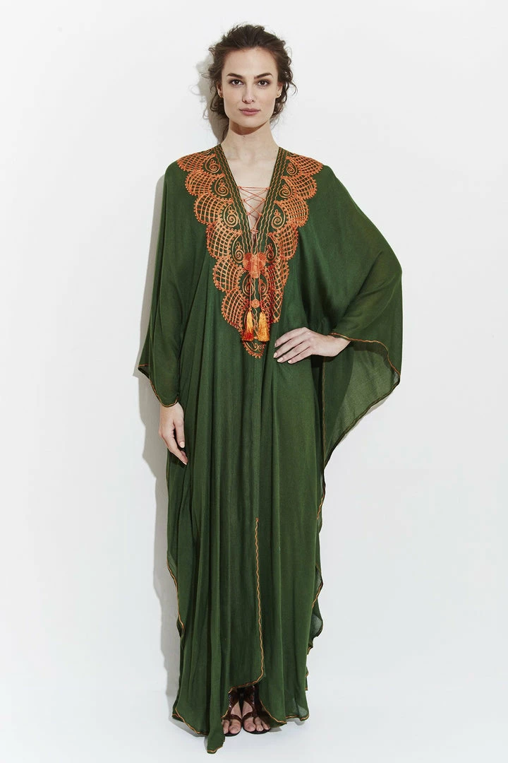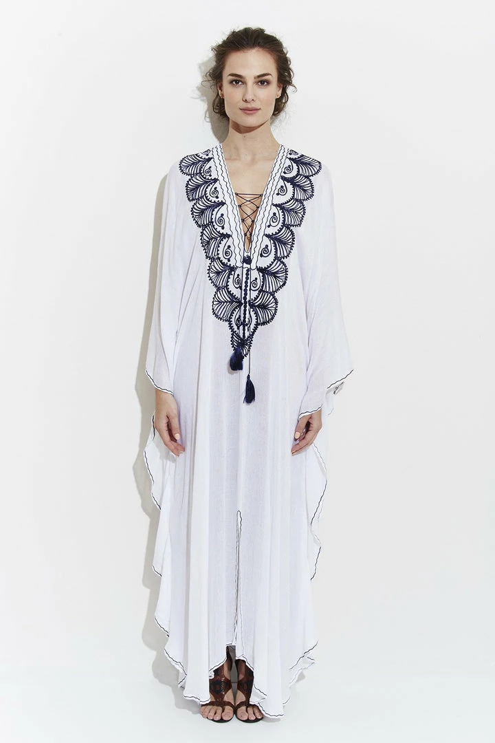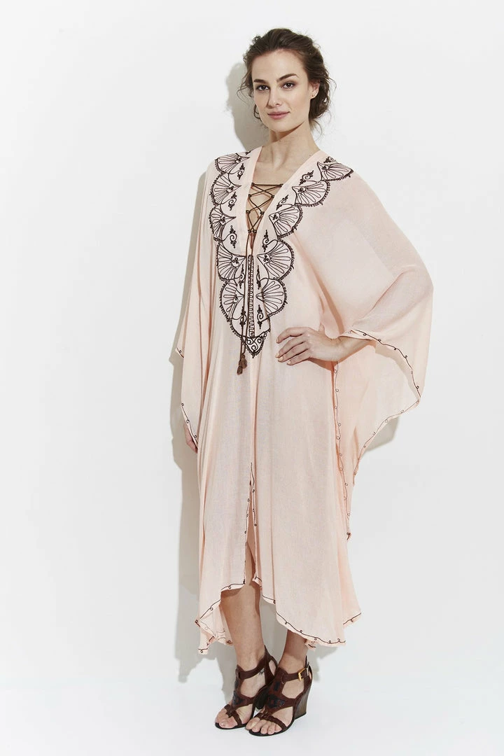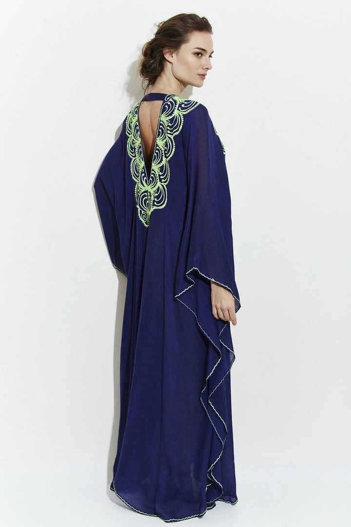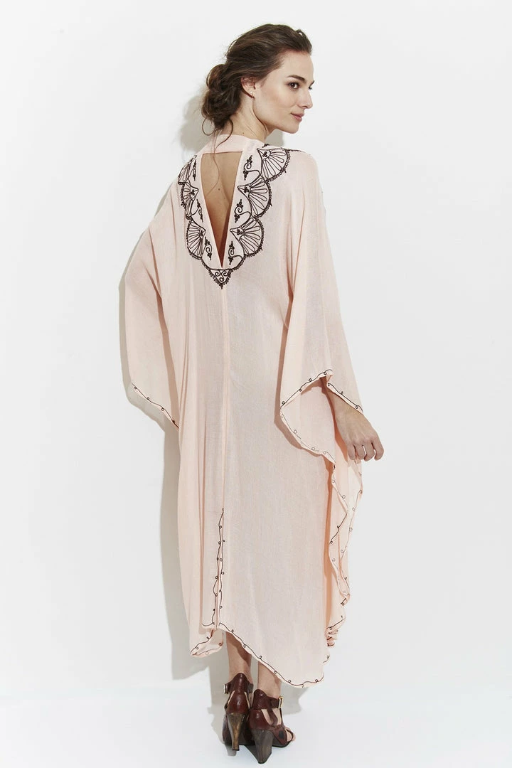 El Fenn is an authentic Moroccan kaftan. It’s great to wear as a swim cover up, from morning until nighttime making a very elegant statement. This vibrant kaftan is ultra soft, made from the finest Egyptian cotton.