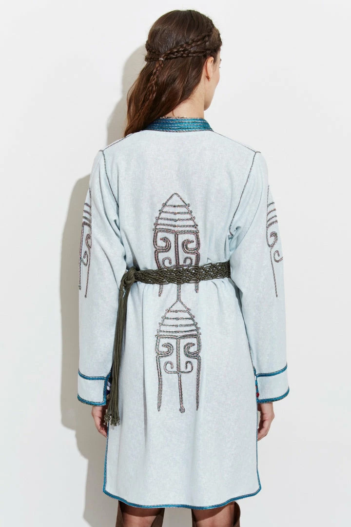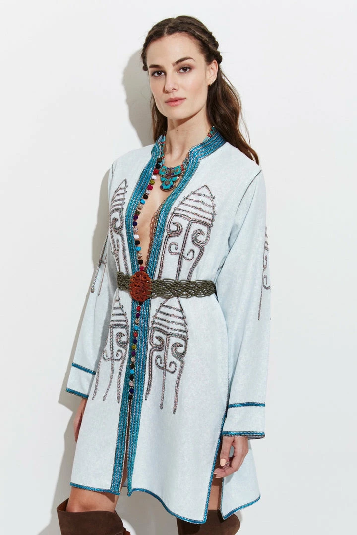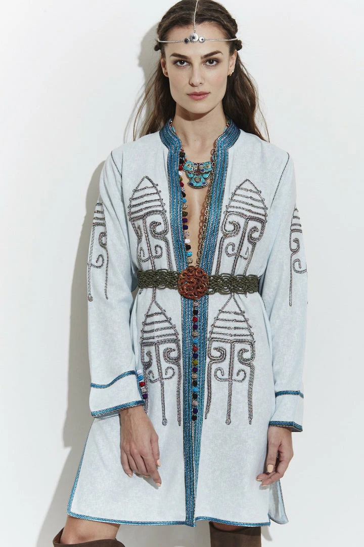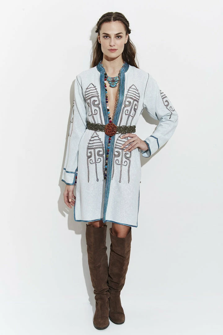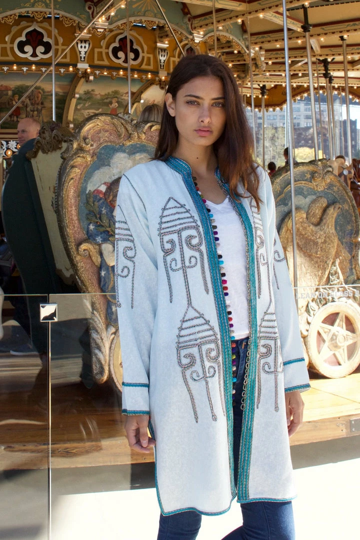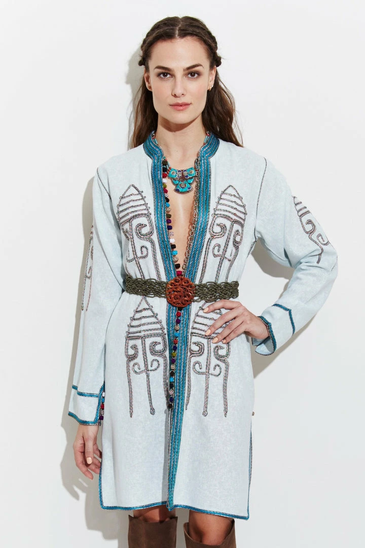 Oversized lightweight hand-embroidered jacket for a free-spirited look.