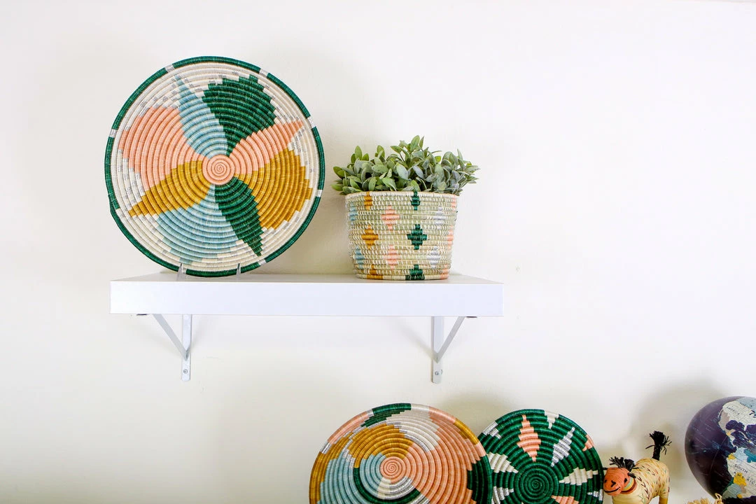 You won’t be able to keep your eyes off this gorgeous statement piece. Kazi’s extra large woven basket is a true work of art. The 14″ Rwanda basket is an exquisite center piece to any tabletop or as eye-catching wall decor. A must have for every home decor enthusiast or someone looking to give a great personalized gift for birthday or weddings. You can also pair with other wall paintings or baskets. There is a hand-stitched loop on the back of each basket as ready to hang wall art. This will soon become your favorite decorative piece in your home.