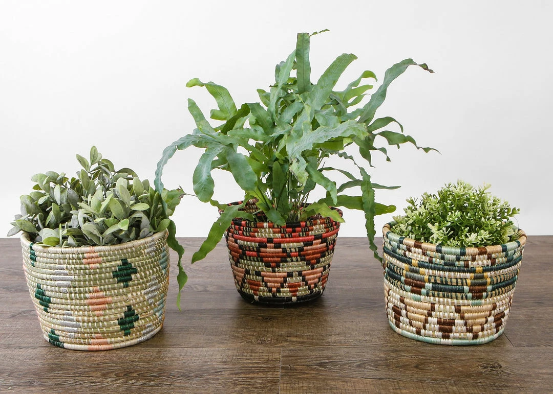 Intricately crafted with timeless tradition, these carefully dyed sisal fiber and sweet grass planters make a stunning statement piece. Perfect size for a stylish storage solution, shelf decoration or home for your favorite plant!