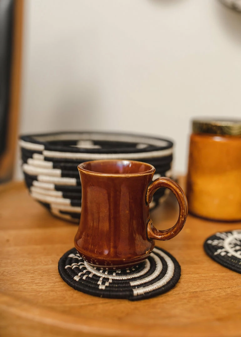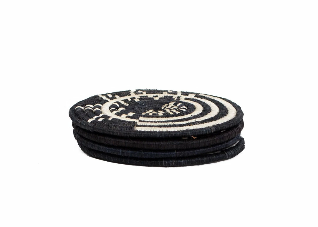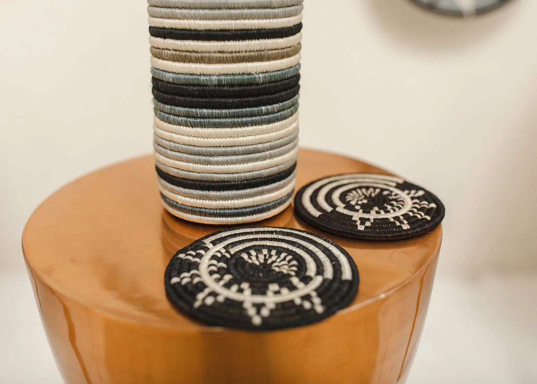 These delicately textured and handcrafted coasters were made by groups of women in intimate communities across Rwanda. They use the sisal agave plant and sweet grass to weave them together.