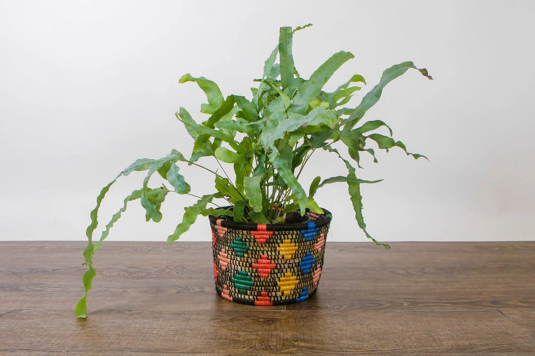 Intricately crafted with timeless tradition, these carefully dyed sisal fiber and sweet grass planters make a stunning statement piece. Perfect size for a stylish storage solution, shelf decoration or home for your favorite plant!