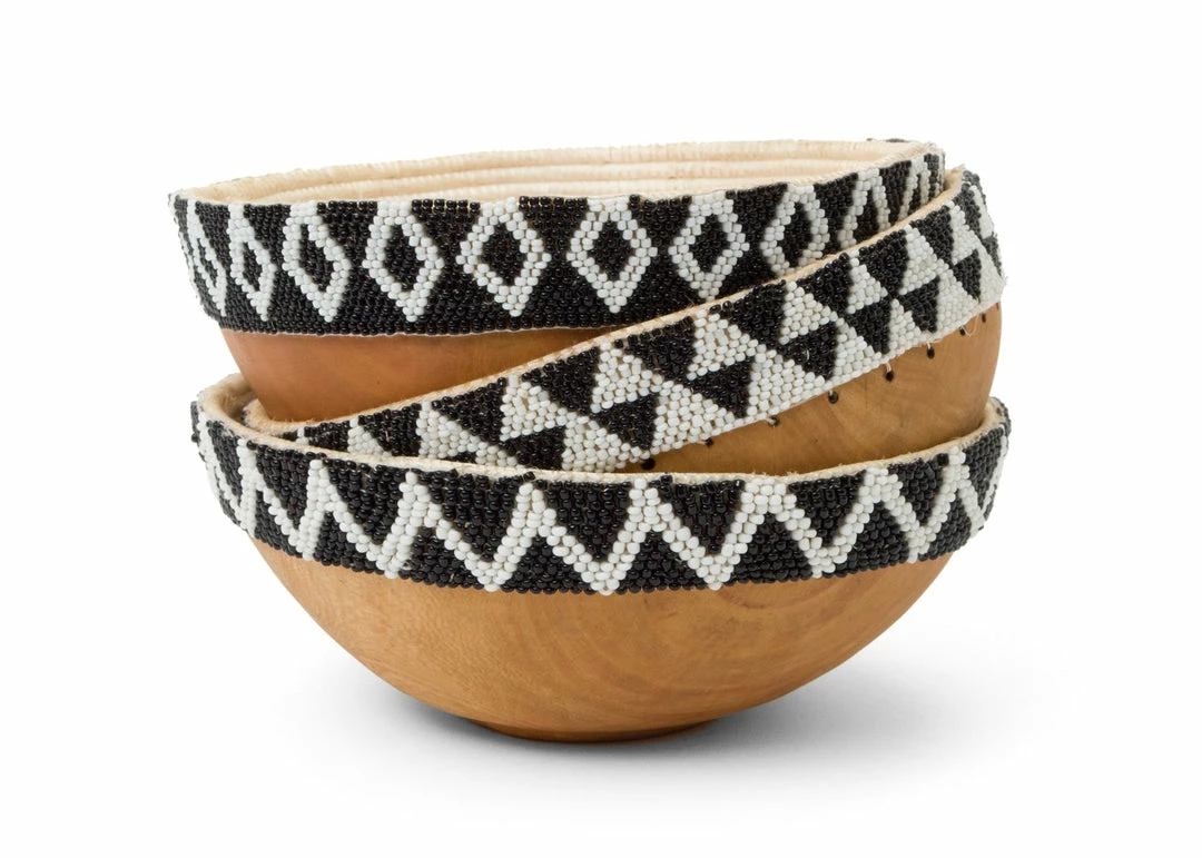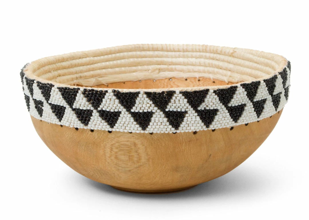 Intricately crafted with timeless tradition, this wood bowl is hand carved and sourced from an artisan in Rwanda who used local wood, papyrus and beads to create this decorative and traditional bowl. The down to earth and natural form will make this wooden bowl a unique and globally conscious addition to your home. Use it as a stylish storage solution to hold fruit, herbs, grains, as a serving dish or catch all.