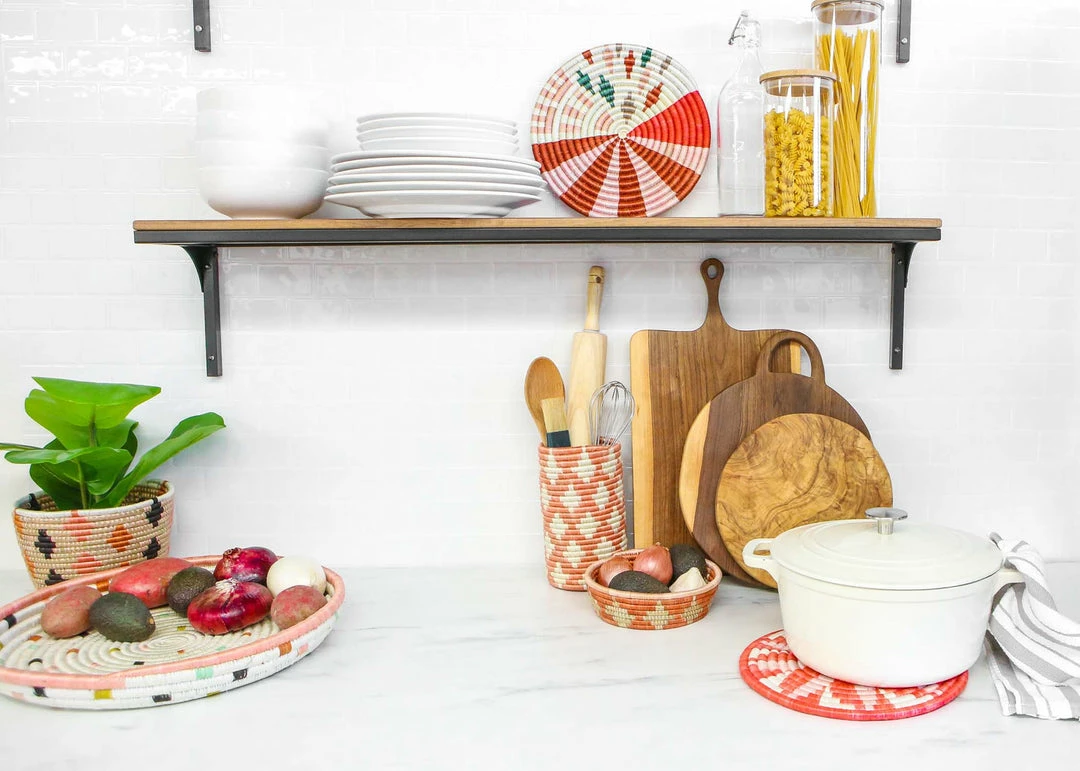 These delicately textured and handcrafted trivets were made by groups of women in intimate communities across Rwanda. They use the sisal agave plant and sweet grass to weave them together.