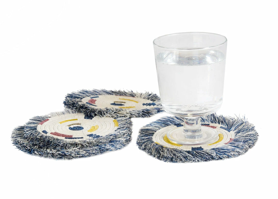 Our fringe wine coasters have a multicolored and organic look to them, making them perfect for any style decor. They can be used for your glass of wine in the evening, or on the living table when you are enjoying your early morning cup of coffee. Meaningfully and purposefully designed.