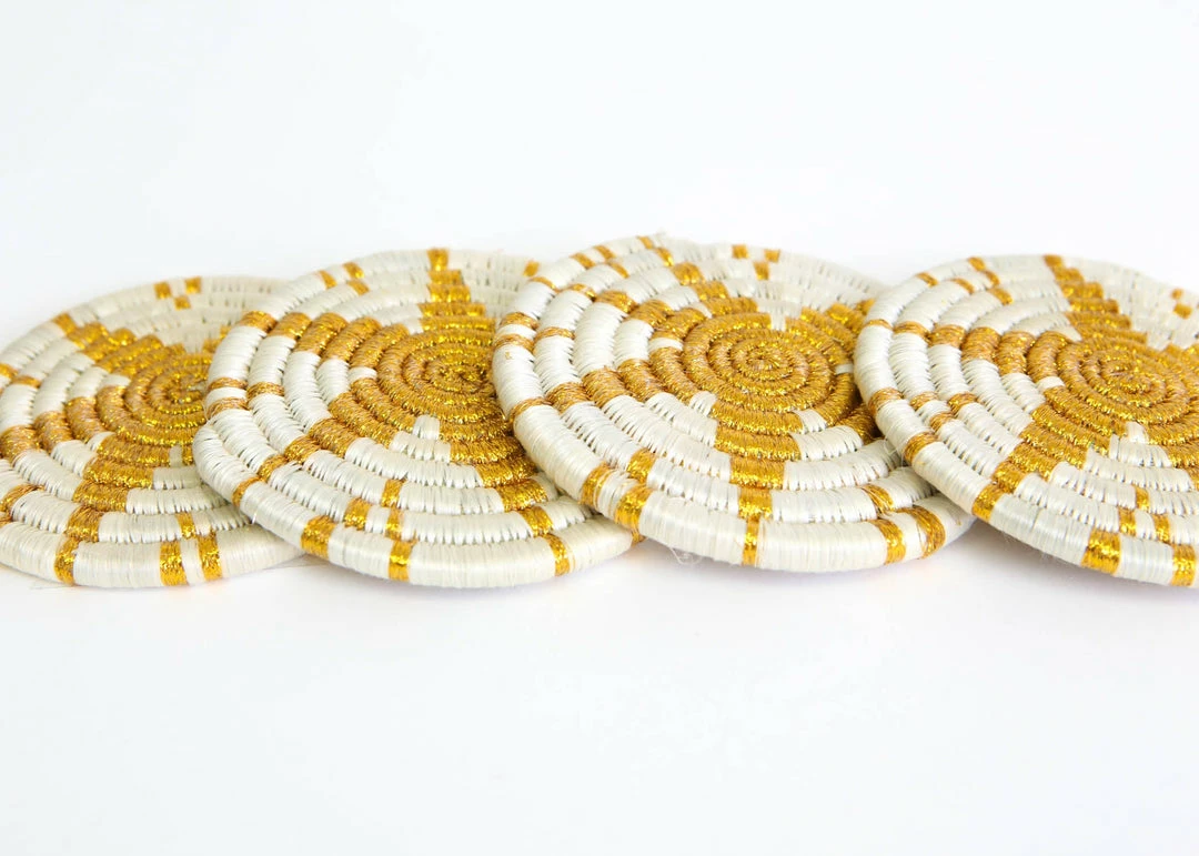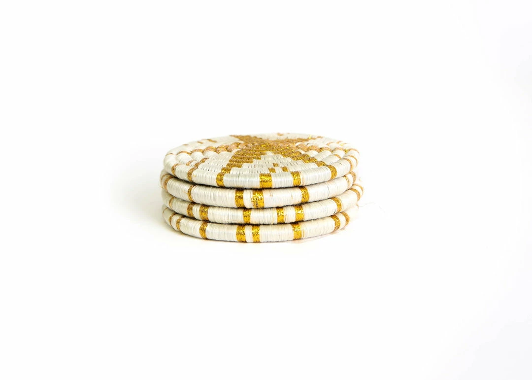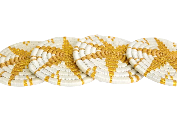 These delicately textured and handcrafted coasters were made by groups of women in intimate communities across Rwanda. They use the sisal agave plant and sweet grass to weave them together.