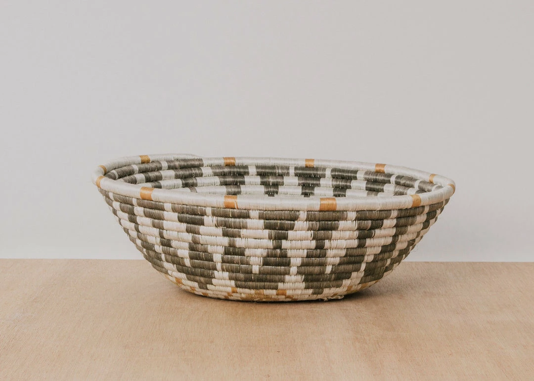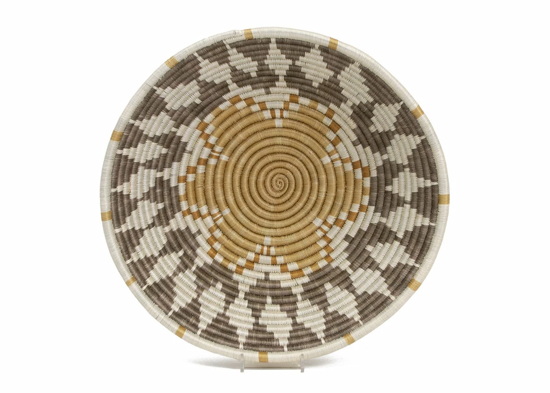 The bold, pointed pattern on the dancer basket conjures the full, sharp movements and brilliant costumes of East African dancers spinning to a drummer’s beat. Both Rwanda and Uganda have rich traditions of celebrations that involve music and dance. Style it on a shelf for additional storage or decorate your wall for a globally inspired feel. This extra large bowl is the perfect size for your coffee or dining room table. Fill it with fruit or utilize the hang loop on the back for the perfect addition to your basket wall.
