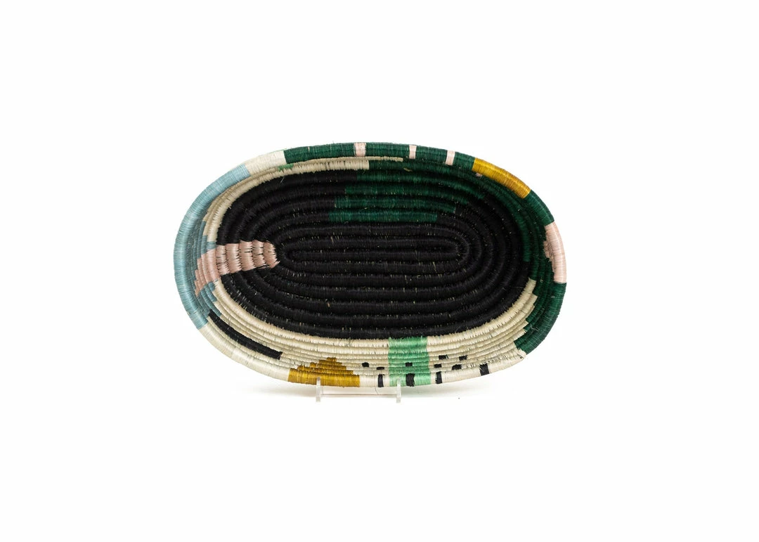 Intricately crafted with timeless tradition, this carefully dyed sisal fiber and sweet grass oval basket makes a stunning statement piece. This basket will make a globally conscious and stylistic addition to your home and table.