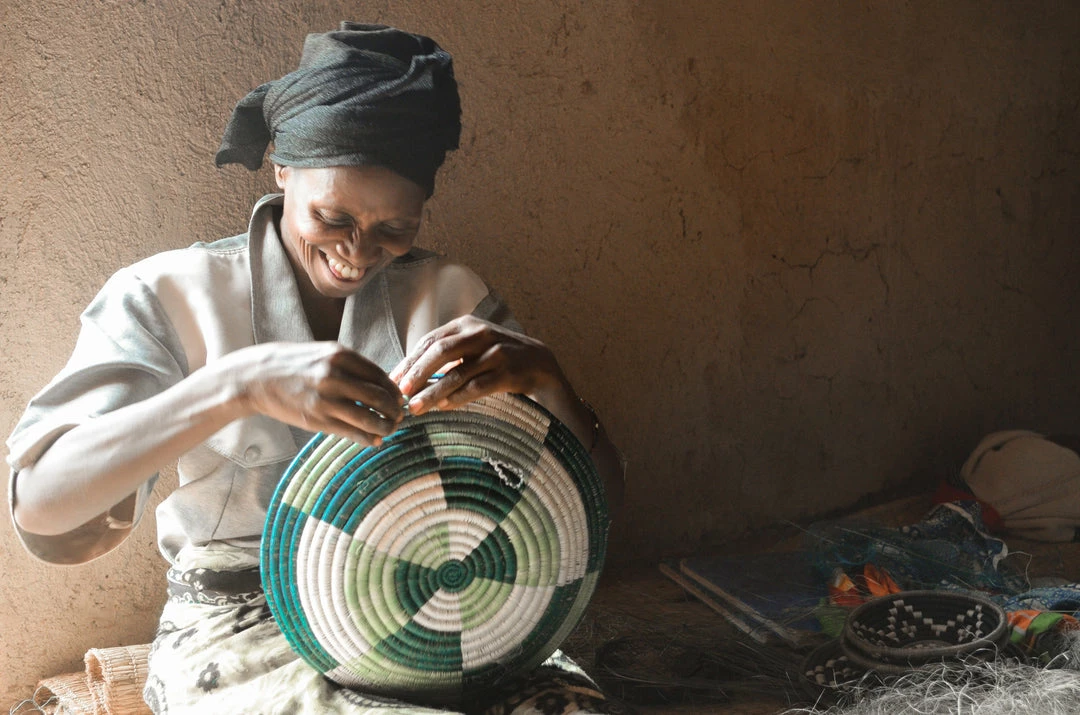 Made only in an ethical, fair trade environment. Handwoven by a cooperative of women located in Rwanda, this one of kind piece takes weeks to complete.