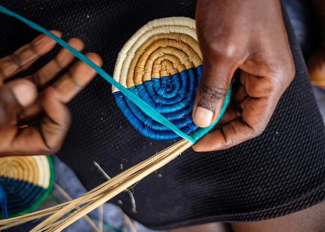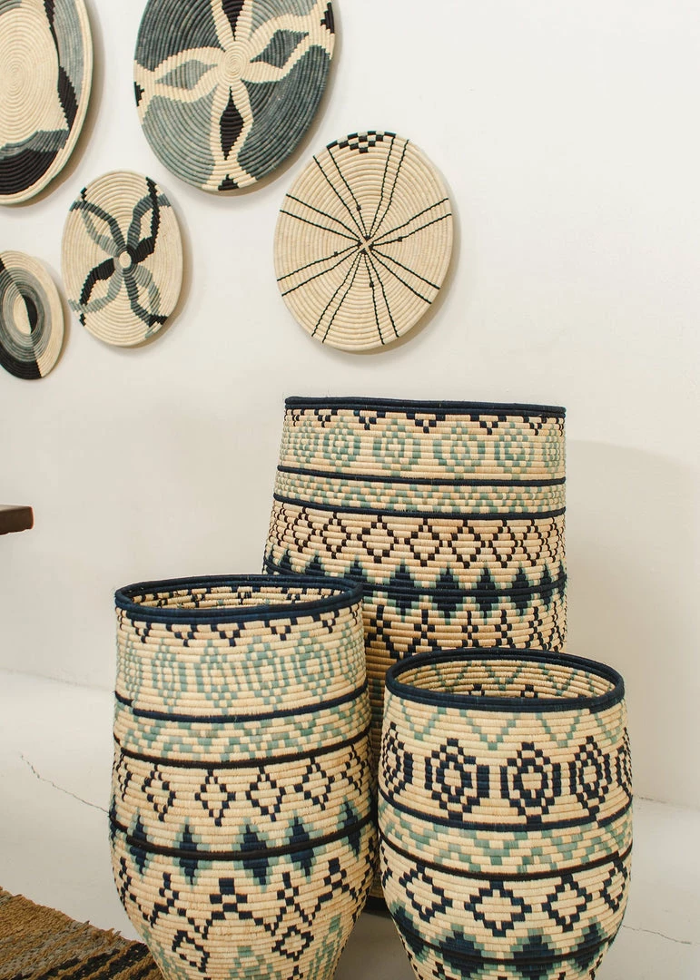 Made only in an ethical, fair trade environment. Handwoven by a cooperative of women located in Rwanda, this one-of-kind piece takes weeks to complete.