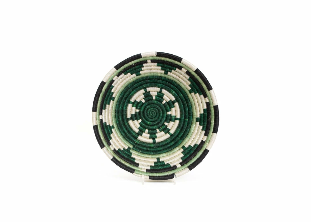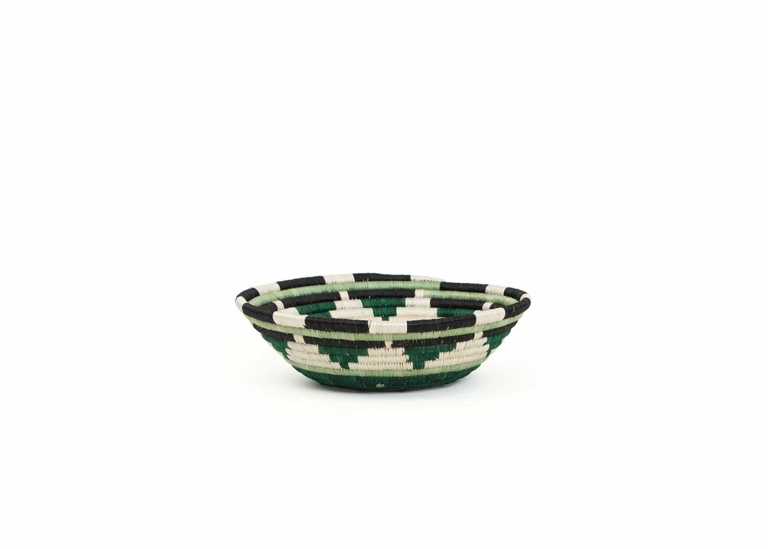 The linear rays emanating from the “sunrise” pattern of this basket paints a picture of dawn’s first light peeking through the morning mist over the beautiful hills in Rwanda and Uganda. Style it on a shelf for additional storage or add it to your coffee table for a globally inspired feel. This medium bowl is just the right size for a fruit bowl, keys, or wall hanging.