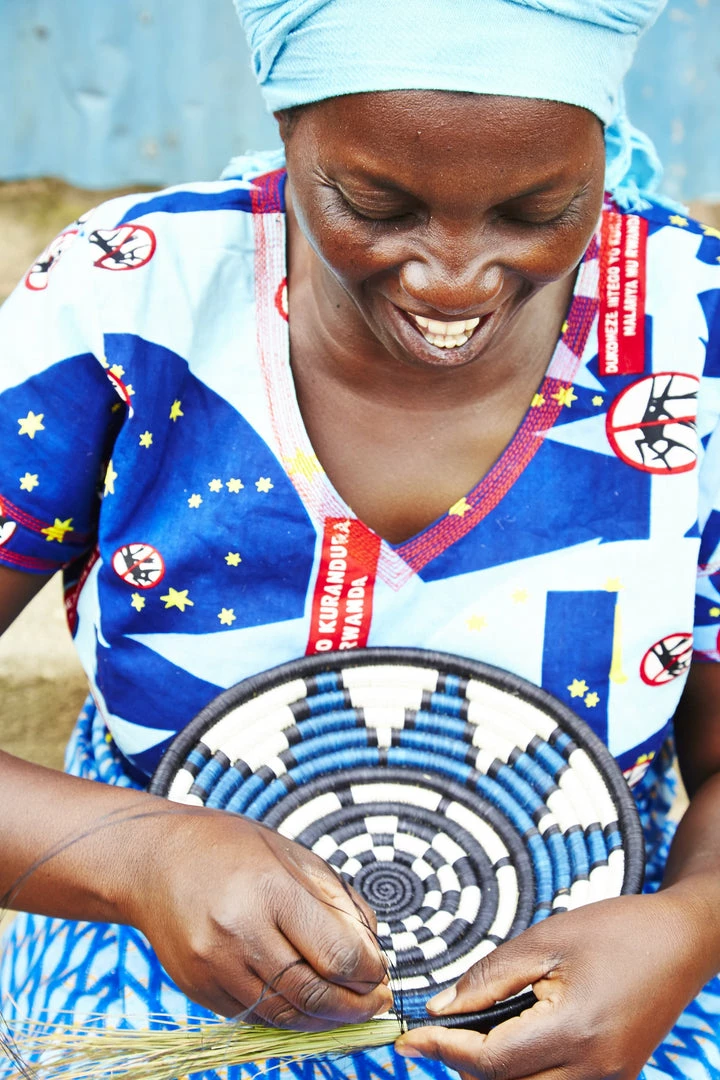 Made only in an ethical, fair trade environment. Handwoven by a cooperative of women located in Rwanda, this one of kind piece takes weeks to complete.