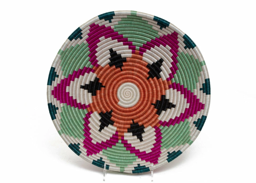 Made only in an ethical, fair trade environment. Handwoven by a cooperative of women located in Rwanda, this one of kind piece takes weeks to complete.