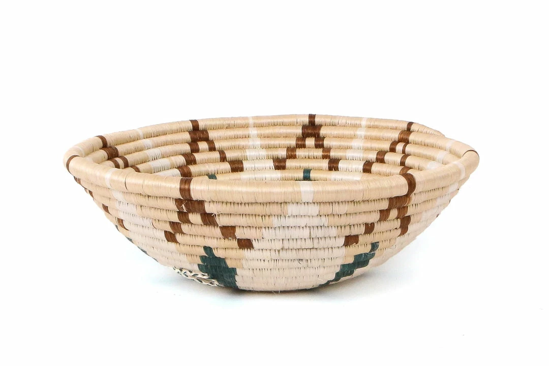 Made only in an ethical, fair trade environment. Handwoven by a cooperative of women located in Rwanda, this one of kind piece takes weeks to complete.