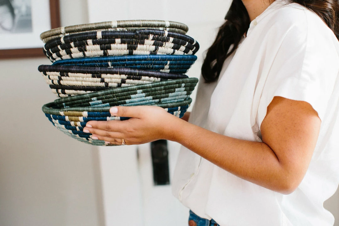 Made only in an ethical, fair trade environment. Handwoven by a cooperative of women located in Rwanda, this one of kind piece takes weeks to complete.
