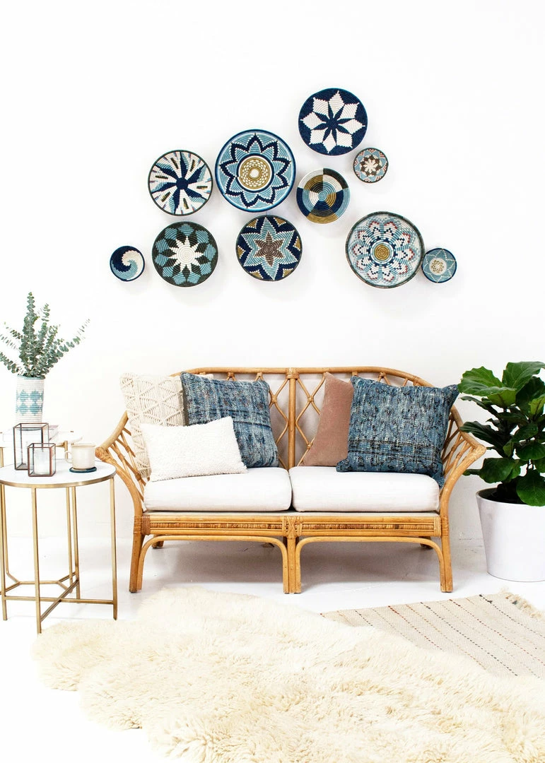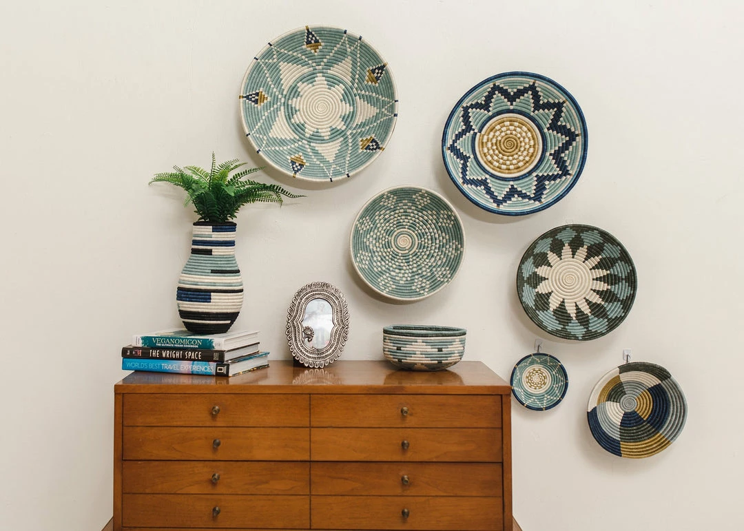 Style it on a shelf for additional storage or add it to your coffee table for a globally inspired feel. This large bowl is just the right size for a fruit bowl, center piece, or wall hanging. Pair with our other bowls, trays and wall plates for an eye-catching wall display.