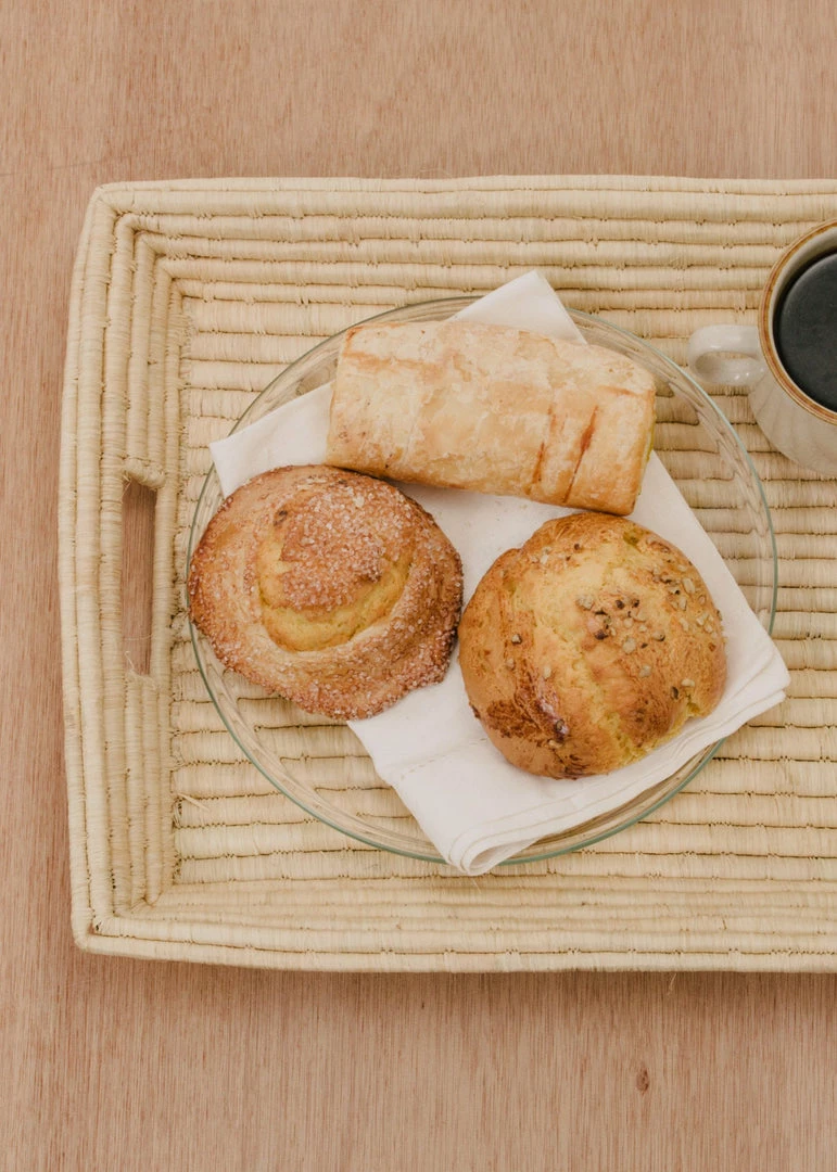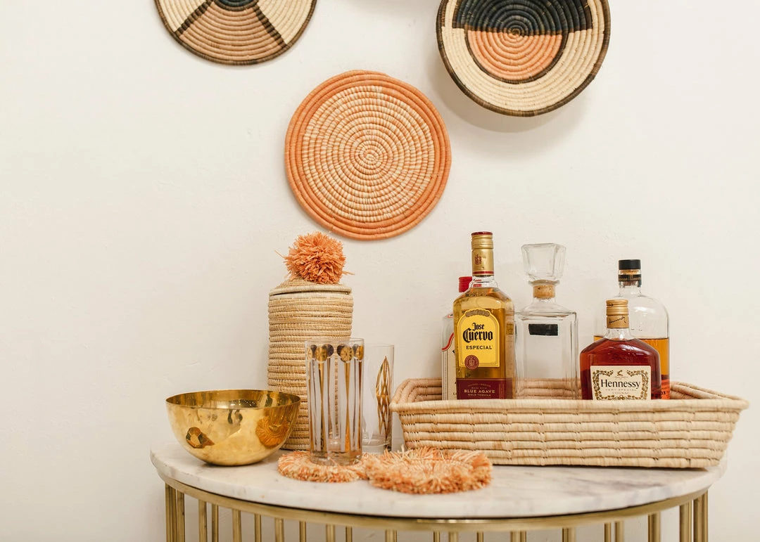 These delicately textured and handcrafted trays were made by groups of women in intimate communities across Rwanda. They use the raffia plant and sweet grass to weave them together.