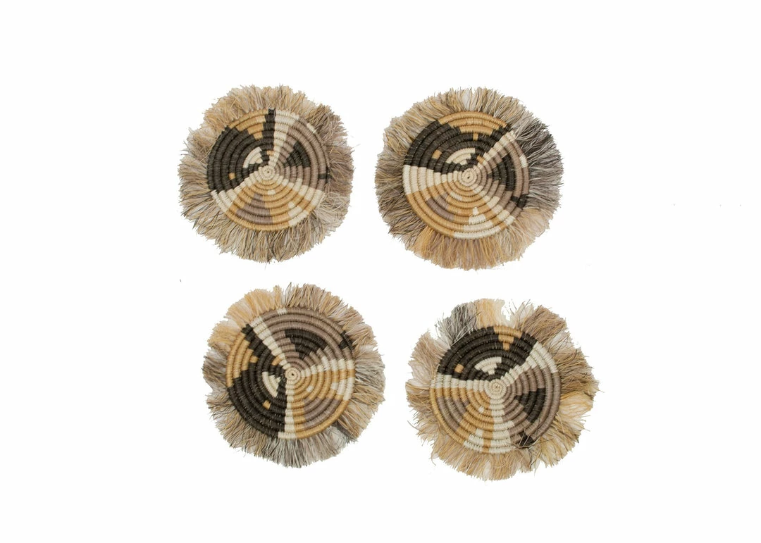 Intricately crafted with timeless tradition, this carefully dyed sisal fiber and sweet grass fringe coaster set makes a bold and exciting statement piece.