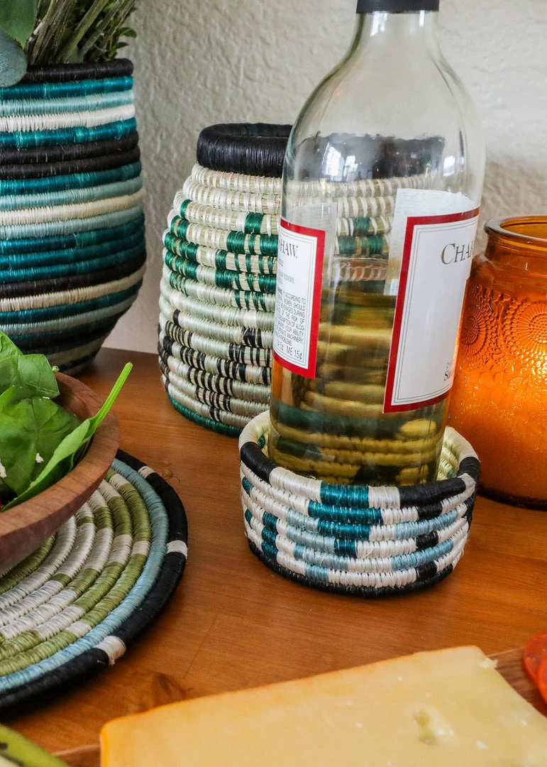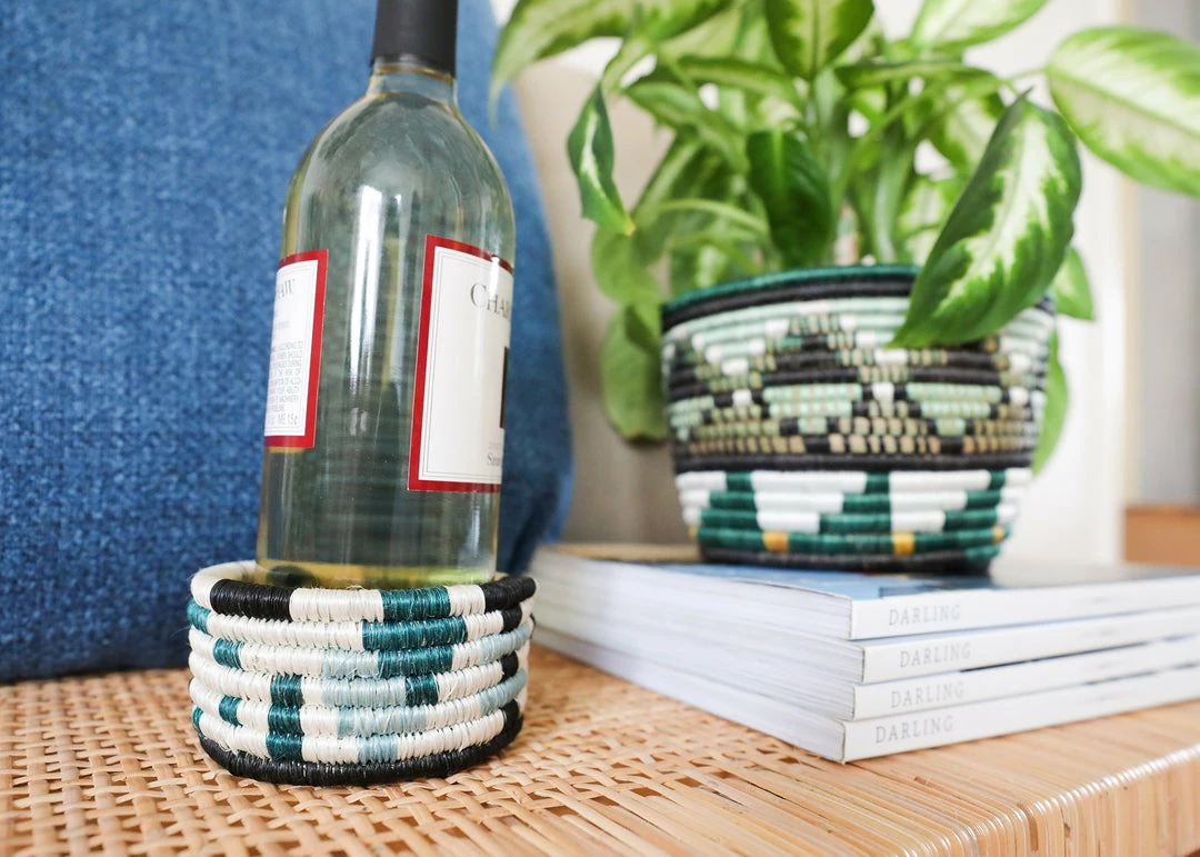 These delicately textured and handcrafted coasters were made by groups of women in intimate communities across Rwanda. They use the sisal agave plant and sweet grass to weave them together.