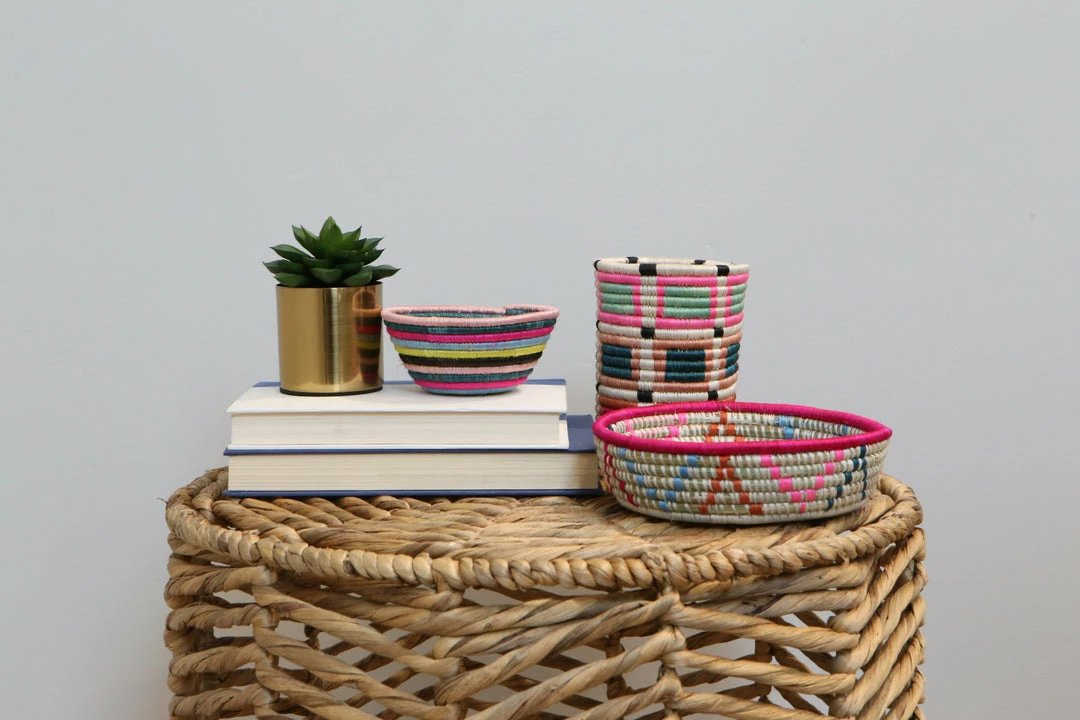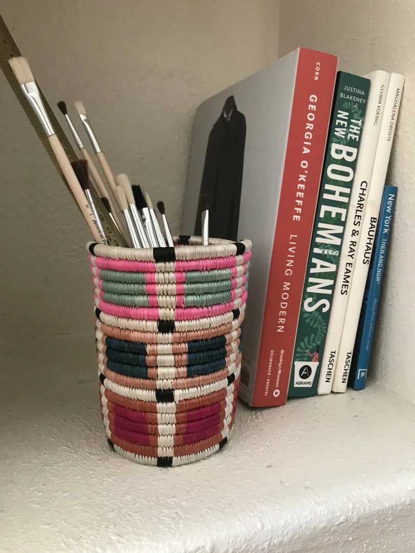 Intricately crafted with timeless tradition. This petite vase makes the perfect home accessory. Fill with pens and place on a desk or use as a planter and style it on a shelf. Made of the highest quality natural sisal fibers in an ethical, fair trade environment. Sisal is wound stitch by stitch around a small sweet grass bundle. Handwoven by a woman in remote regions of Rwanda. This size vase / cup works perfect to store cutlery on your countertop or serve display your cutlery at a buffet lunch. You can also store your paintbrushes. in them for a super artsy vibe!