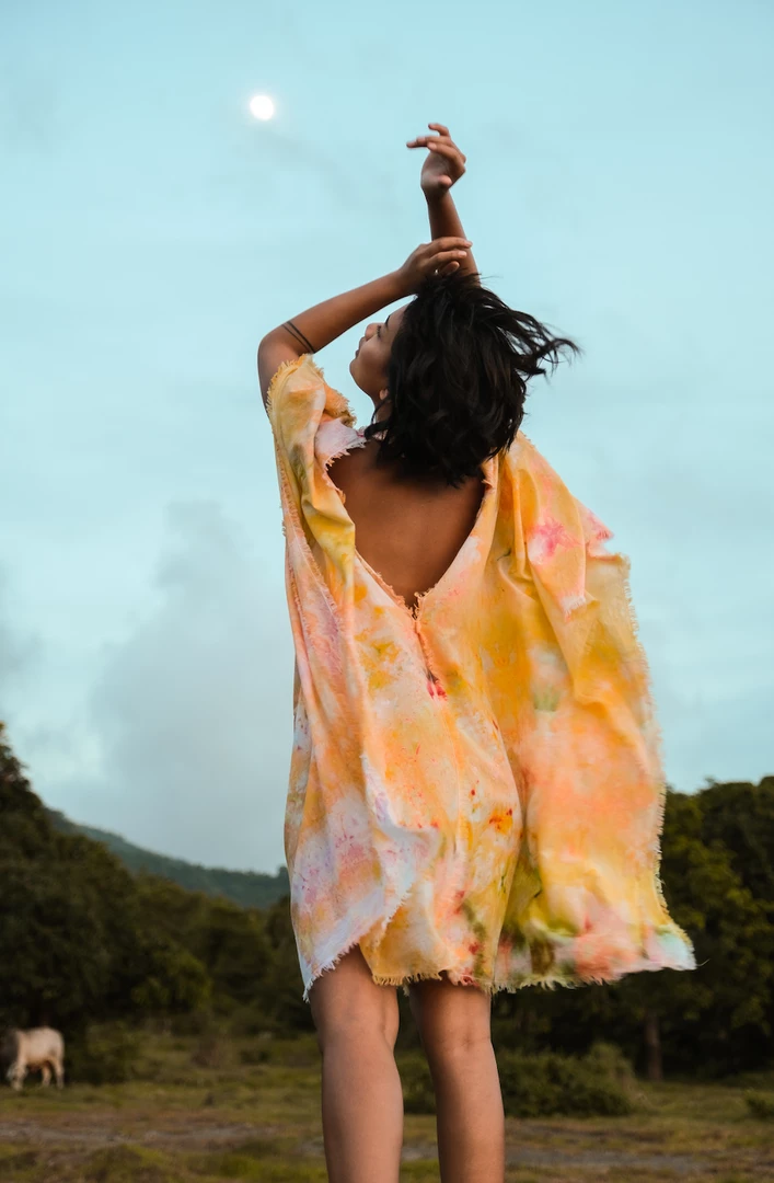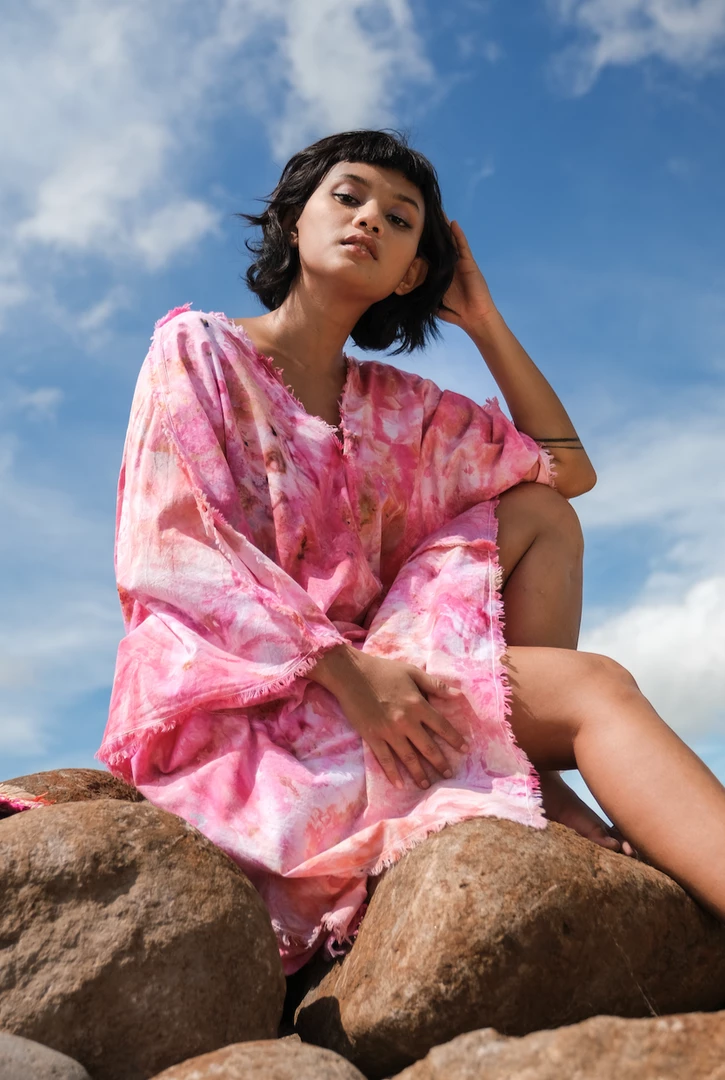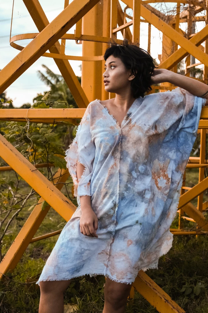 This dreamy low back caftan is hand dyed at Meison Metisse atelier using eco-friendly dyes. Each kaftan offers slightly different characteristics and tells a unique story.