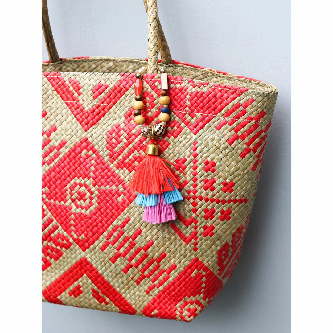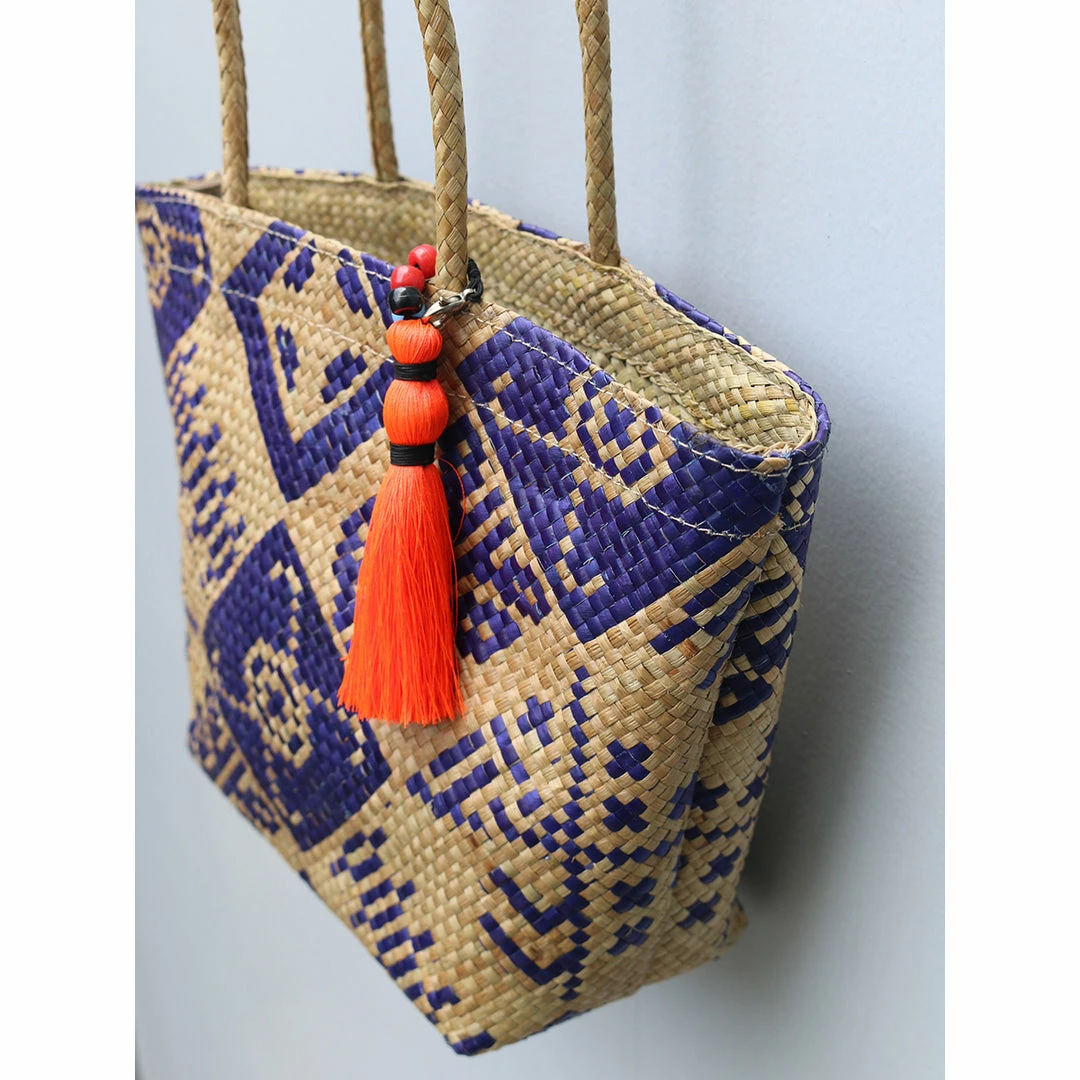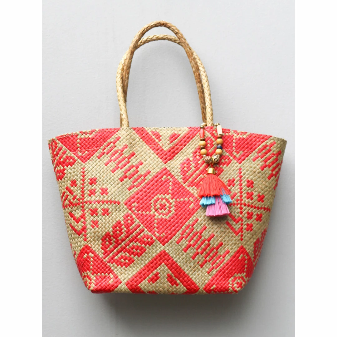 Maria Bag made of natural straw handwoven by mothers on Samar Island featuring Tribal motifs.