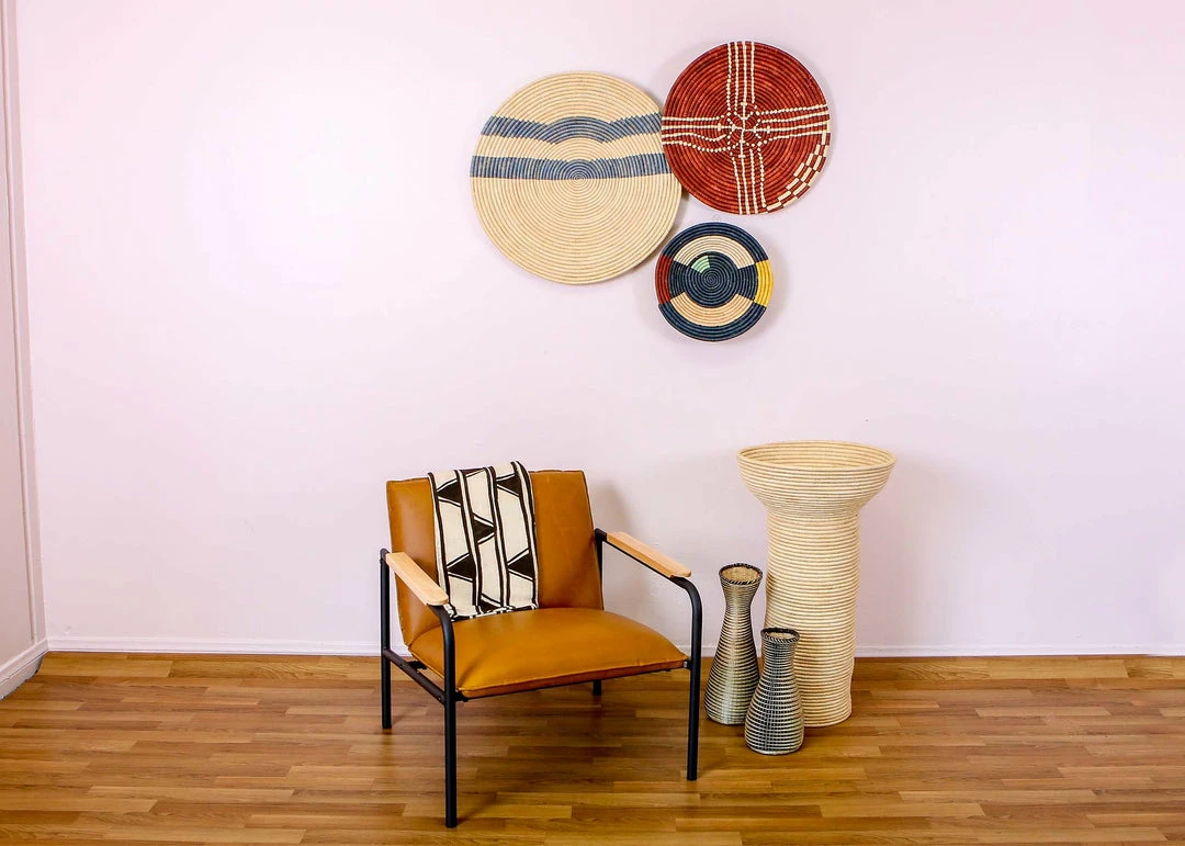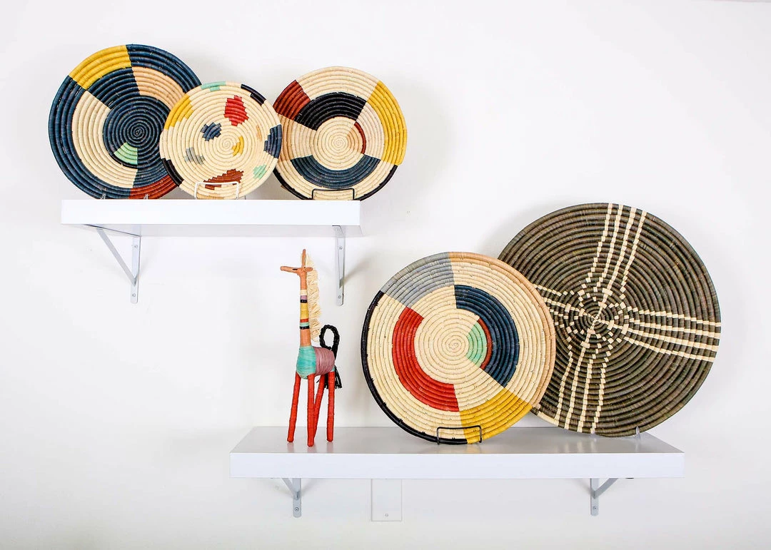 This gorgeous piece is a true work of art. Use as exquisite accent decor for any tabletop or as eye-catching wall decor. A must have for every home decor enthusiast or someone looking to give a personalized hostess gift for birthday’s or wedding’s. You can also pair with other wall paintings or baskets. Each of these breathtaking designs was handmade by a talented woman in rural Uganda. There is a hand-stitched loop on the back of each basket for ready to hang wall art. These delicately textured and woven baskets were made by groups of women in intimate communities across Uganda in an ethical, fair trade environment. They use the raffia plant and banana fibers to weave them together.