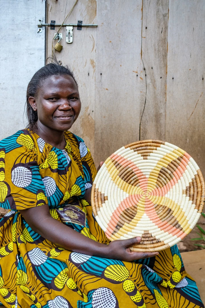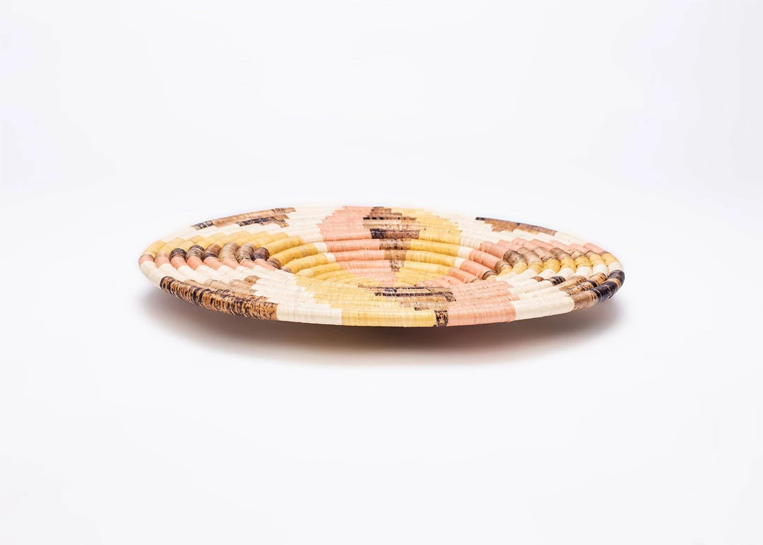 Looking for contemporary but warm and natural wall art? Our wall plates are just for you! These beautifully intricate wall plates are designed to enhance and magnify any room. Leave the woven plate as a stand-alone piece or pair with other plates or bowls to transform your space. Match to throw pillows in your living room or bed set in your bedroom, each of these breathtaking designs was made with courage and heart by a woman in rural Rwanda. She hand-stitched a loop on the back of each basket so you too, can enjoy this piece easily on your wall.