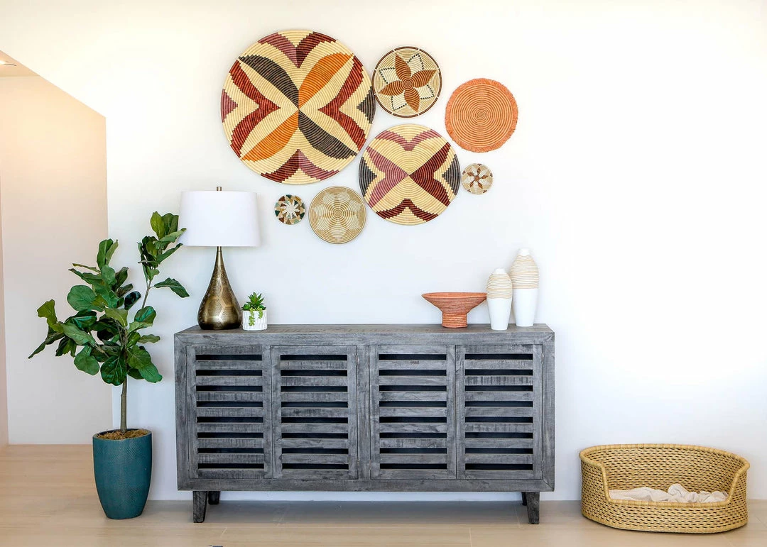 This gorgeous, woven piece is a true work of art. Use as an exquisite center piece to any tabletop or as eye-catching wall decor. A must have for every home decor enthusiast or someone looking to give a personalized hostess gift for birthdays or weddings. You can also pair with other wall paintings or baskets. Each of these breathtaking designs was made with courage and heart by a woman in rural Uganda. There is a hand-stitched loop on the back of each basket as ready to hang wall art.