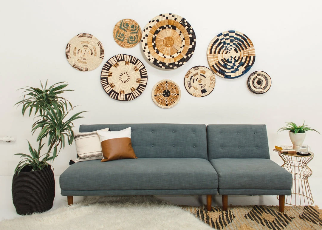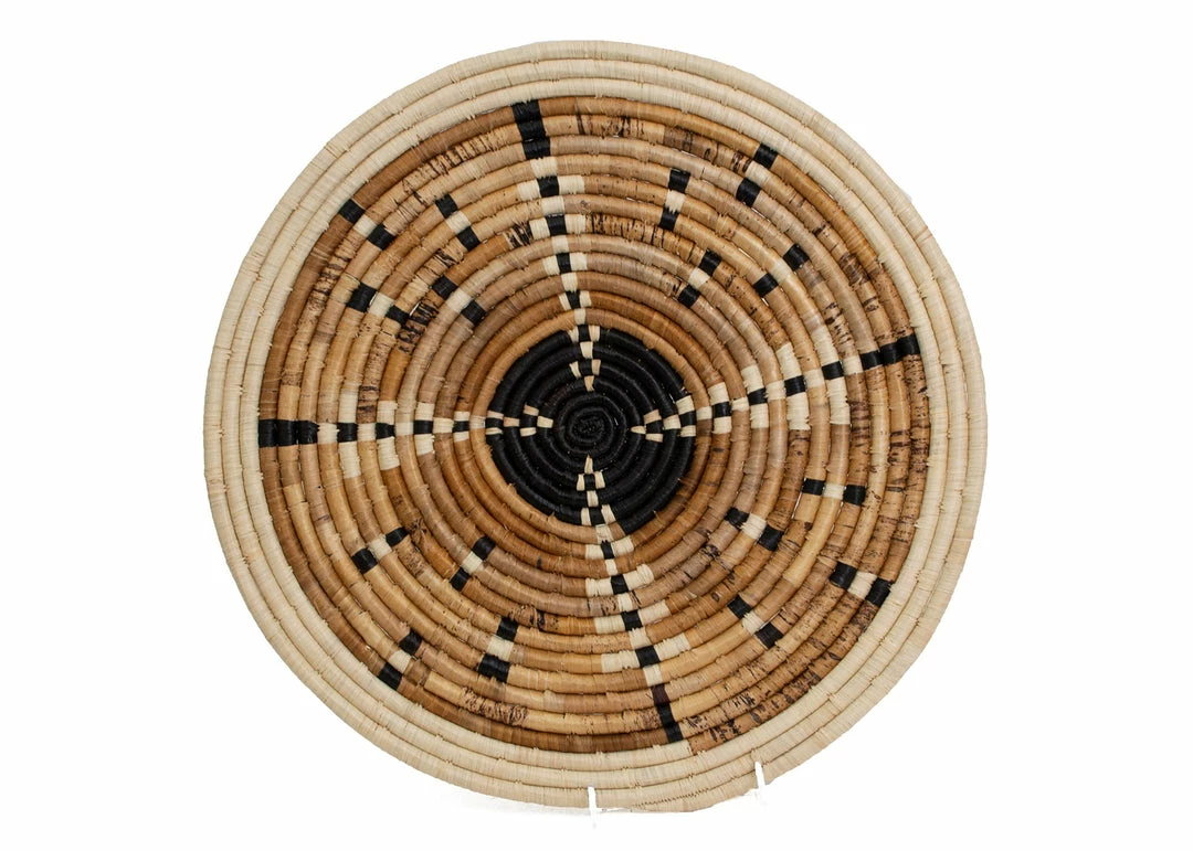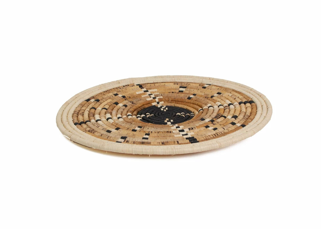Intricately crafted with timeless tradition, this carefully dyed raffia fiber and sweet grass wall plate is a stunning statement piece. Style it in any room for a globally inspired feel. This beautiful wall plate is the perfect size as a stand alone piece or pair it with our large baskets and trays to create an eye-catching basket-wall.